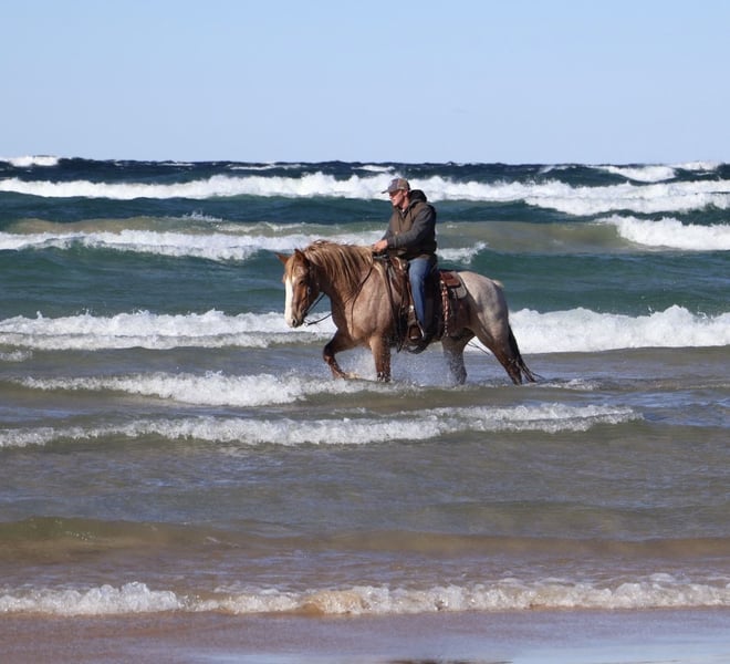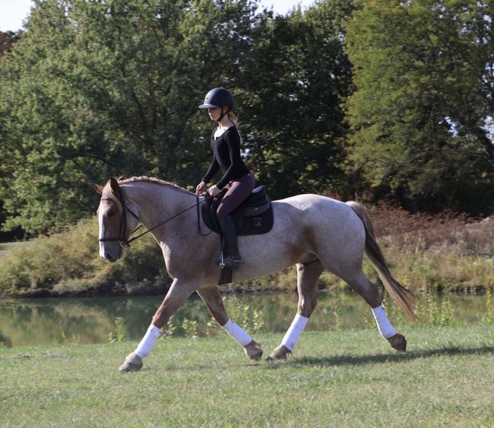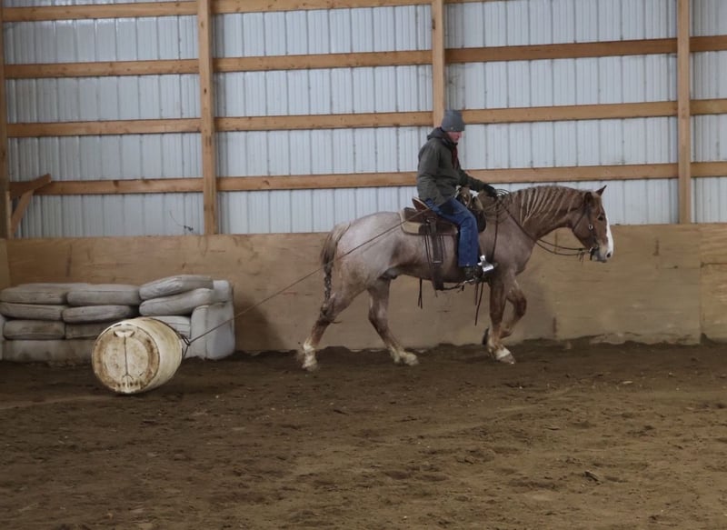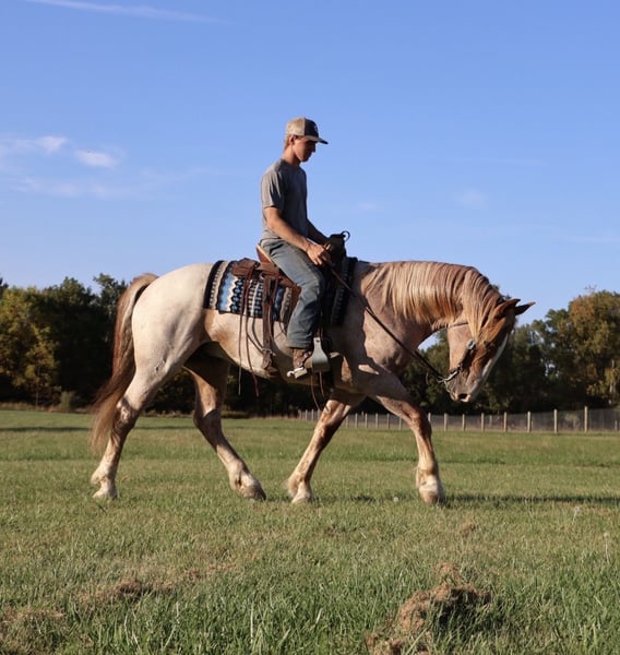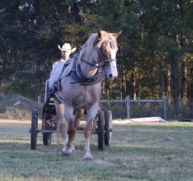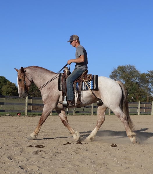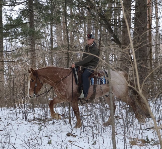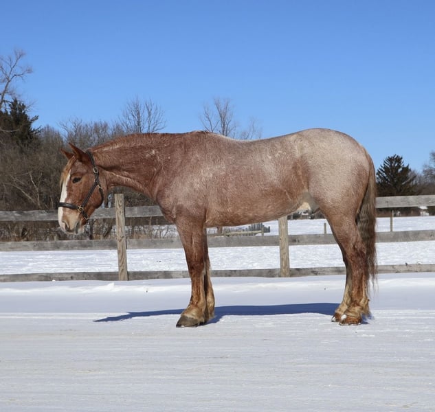 💎 𝐓𝐇𝐄 𝓓𝓲𝓪𝓶𝓸𝓷𝓭 𝐒𝐇𝐎𝐖𝐂𝐀𝐒𝐄 💎 Happening now thru MONDAY | FEBRUARY 23rd - Available EXCLUSIVELY on HorseBid's website! For more details and to register visit: www.Horsebid.com CONSIGNOR CONTACT: Elleese Schwartz 248, 390-6831 LOCATION: Howell, MI BREED: Brabant Quarter Horse Cross REGISTERED: No COLOR: Red roan HEIGHT: 15.3 AGE: 7 GENDER: Gelding We have been holding on to this secret and are finally ready to offer him for sale! His name is Hank and he is the life of the party and the guy everybody wants to know! Not only will he turns heads wherever he goes, he has the most charming demeanor. He is a stunning red roan who shines like a new penny when the sun hits his coat! Hank is a 7 year-old, 15.3hh Brabrant Quarter Horse cross gelding. He comes equipped with all the bells and whistles from all the fancy buttons in the arena to all of the liberty training. He will sit and lay down with the most subtle of cues, you will look like a horse whisperer working with him. He knows how to side pass, pivot back up, work on and off seat and leg pressure, pick you up at the mounting blocks and much more. He is a powerhouse of strength, versatility, and athleticism. For a horse of his size, Hank moves with incredible grace and fluidity, making him not only a rideable mount but also an athlete in his own right. Whether you are riding Western, English, or bareback, Hank delivers an exceptional experience, seamlessly transitioning between disciplines with ease. What truly makes Hank stand out is his “been there, done that” attitude. He is the definition of a bombproof horse—absolutely safe in any environment. From water front gallops across Lake Michigans picturesque shorelines to a ride across the sleeping bear sand dunes. Hank has seen it all. Hank has been ridden on state roads, in the woods, open fields, and has even gone on a shopping trip to our local farm store! His beautiful roan color captures everyone’s attention! One glance into his big brown eyes will steal your heart. Out on the trails, Hanks calm, and steady nature shines. Water crossings, tarps, bridges and other common and uncommon obstacles do not phase him in the slightest. His even keel temperament makes him an ideal horse for beginners who need a forgiving partner, while his experience and smooth gaits make him just as enjoyable for advanced riders. Hank is the rare horse that adapts to his rider’s needs, making him a perfect fit for anyone from novice to seasoned equestrians. And speaking of smoothness, Hanks three gaits are simply unbeatable. His walk, trot, and canter are incredibly fluid and comfortable, making him perfect for all-day rides without leaving you sore. Whether you are working in the arena or exploring the trails, Hank athleticism and stamina ensure he will keep going strong, mile after mile. In short, Hank is the full package: strikingly beautiful, strong, athletic, and most importantly, safe. If you are looking for a versatile horse Hank is the perfect partner. Hank is also well broke to drive, he is traffic safe and no stranger to busy roads. Any one who can hold the lines can drive him! He is also a blast to Jump, he holds a great canter to the fences and will jump from any distance. You do not need to be accurate to navigate him around a course, in or out. He even swaps his leads! In the hunter ring or cross country he's brave and dependable. He is ready to take on anything, whether you are a beginner looking for safety or an experienced rider seeking a smooth, dependable horse for long adventures. Hank lives in Howell, MI 48855. Please call or text Ellesse Schwartz at 248-390-6831) for more information.
