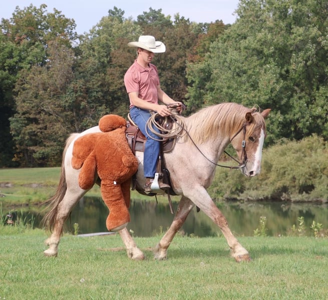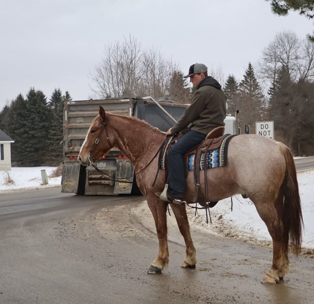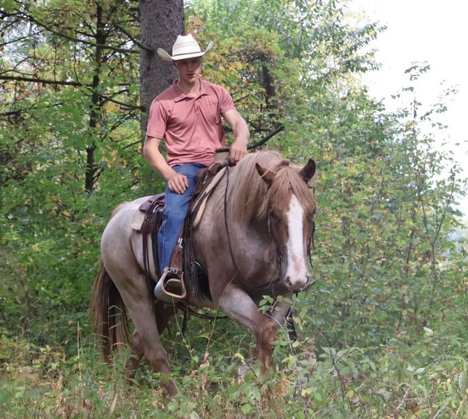 Hank, 7 anni, 15,3 hh, castrone roano rosso, incrocio Brabant/QH