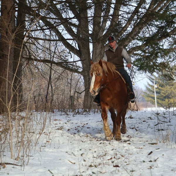 "AVAILABLE ON ONLINE HORSE AUCTION AT www DOT PlatinumEquineAuction DOT com BIDDING OPEN NOW thru SUNDAY | MARCH 29TH! *Final price will be determined on auction site* CONSIGNOR CONTACT INFO: Ellesse Schwartz 248-390-6831 LOCATION: Howell, MI Introducing Prince. He is a stunning chesthnut with the thickest naturally curley flaxen mane and tail you will see. He is a 7 year old Belgian Gypsy cross. Not only is he absolutely stunning this gelding’s conformation, size and build are ideal! He stands just a hair shy of 16.1hh, boasting a lot of bone and substance without being too heavy and still keeping a very clean and athletic build. He also has the kindest face and big doe eyes. Prince is a very gentle soul by nature. Quiet and easy going. He rides both English and western, and absolutely loves the trails and outdoors. He is great in traffic, riding down the roads, through the fields, and woods. He is great in groups, or out on solo rides. He also knows all the basics in the arena, walk and trot off a kids and canters with a little squeeze. Slow and steady is his favorite pace. He side passes to the mounting block and stands like a rock to get on and off of. Prince also carries the flag, drags tires or sleds, and is great with tarps. He is slow and steady in everything you ask him to do! Prince is easy, and uncomplicated to ride and drive. He is extremely well broke in harness, and has been driven to town, on busy roads and back roads. He will work single or double. Prince stands well to harness, hook and for passengers to get on and off the carriage. This horse quickly became one of the favorites in the barn, and had been enjoyed by the entire family from riders 6 yo and up. Whether it be fun arena rides, driving down the road, or out hitting the trails. In the barn Prince is a welcomed addition. He has the best manners. Prince stalls great, greets you in the pasture and will walk as slow as you want while leading him. He is great in the pasture with others. He will stand tied in cross ties, to a trailer or a post. Prince is just a joy to be around and a very easy keeper. He Loads and hauls great and is wonderful in new environments. Prince is the perfect age, with a solid all around start and a whole life ahead of him to go enjoy. He is the very definition of a husband horse or one anyone can hop on and enjoy. Ride him once a month or every day and he stays the same. This horse wants to be your best friend, companion and wants to enjoy all of life’s adventures with you. Prince lives in Howell, MI 48855. Call or text Ellesse Schwartz for more information 248-390-6831