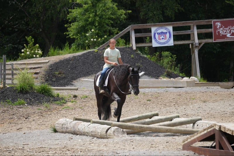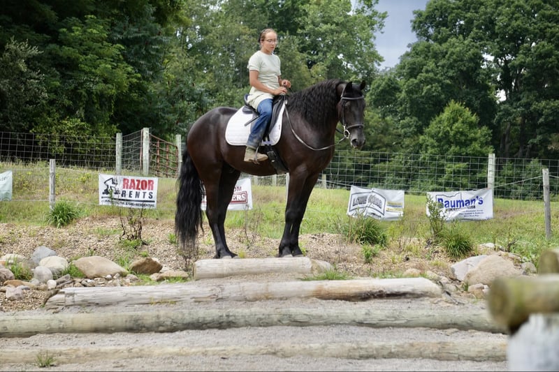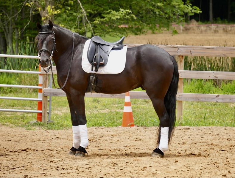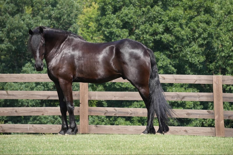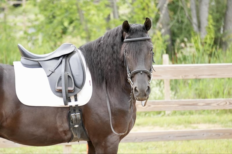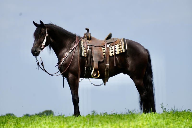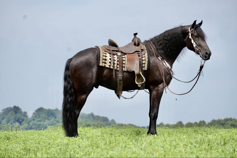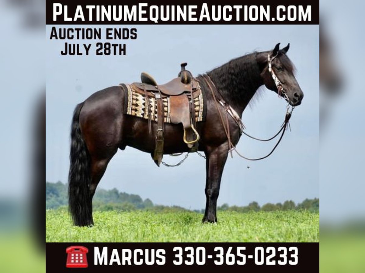 ONLINE AUCTION Place your bids at www.PlatinumEquineAuction.com Starting Bid $3500 Auction ends July 28th, 2024 Need a new saddle? Check out White Rock Saddles on our website or Facebook! Perfection, that is what you will think when you gaze upon this beauty. Jackson is a 5 year old, Strong 16.2 hand gorgeous Reg. Friesian cross gelding. He is a solid citizen that catches the eye of all who see him. He is a true all around horse for anyone to enjoy no matter if they want a fantastic riding partner, or they need a sensible equine partner, or they want to hitch him up to that epic carriage for a quiet relaxing drive down the road. He is a beautiful deep black coat with long flowing hair for days. He has a great personality and loves all the snuggles you give him. He is a very solid and trail horse. He has a great walk, a very nice trot and canter. He has been on countless trail rides in all different types of terrain. He crosses water of all kinds and will walk over bridges. Jackson is definitely a horse that you will wear your tires off looking for, as he is a once in a lifetime type of horse. He is tarp safe and doesn’t mind the ball at all, loves obstacles, and has been on tons of trails and he does great. He really loves his down time with his person and loves to play with the big ball together. Jackson is a horse that we know you will fall in love with, he does not need to be in any type of program or ridden every day to be the same horse for you when you get him out. He can be kept in a stall and also does great on pasture and is super easy to catch. He stands well in the cross ties and really loves attention. He is wearing shoes all around and does wonderful for the farrier. If you feel this is the horse for you, please feel free to contact us or come see him in person! Contact Marcus Weaver 330-365-0233 Located in Fresno, OH. ONLINE AUCTION Place your bids at www.PlatinumEquineAuction.com Starting Bid $3500 Auction ends July 28th, 2024 Need a new saddle? Check out White Rock Saddles on our website or Facebook!