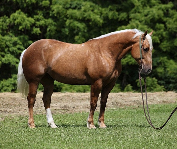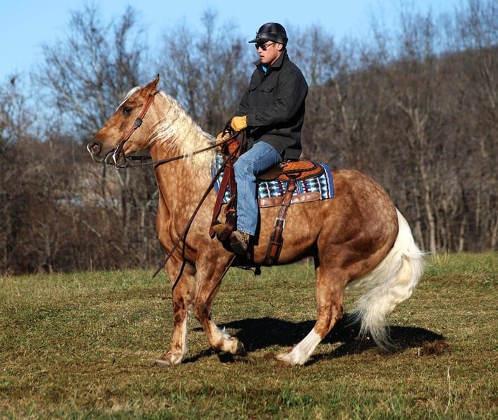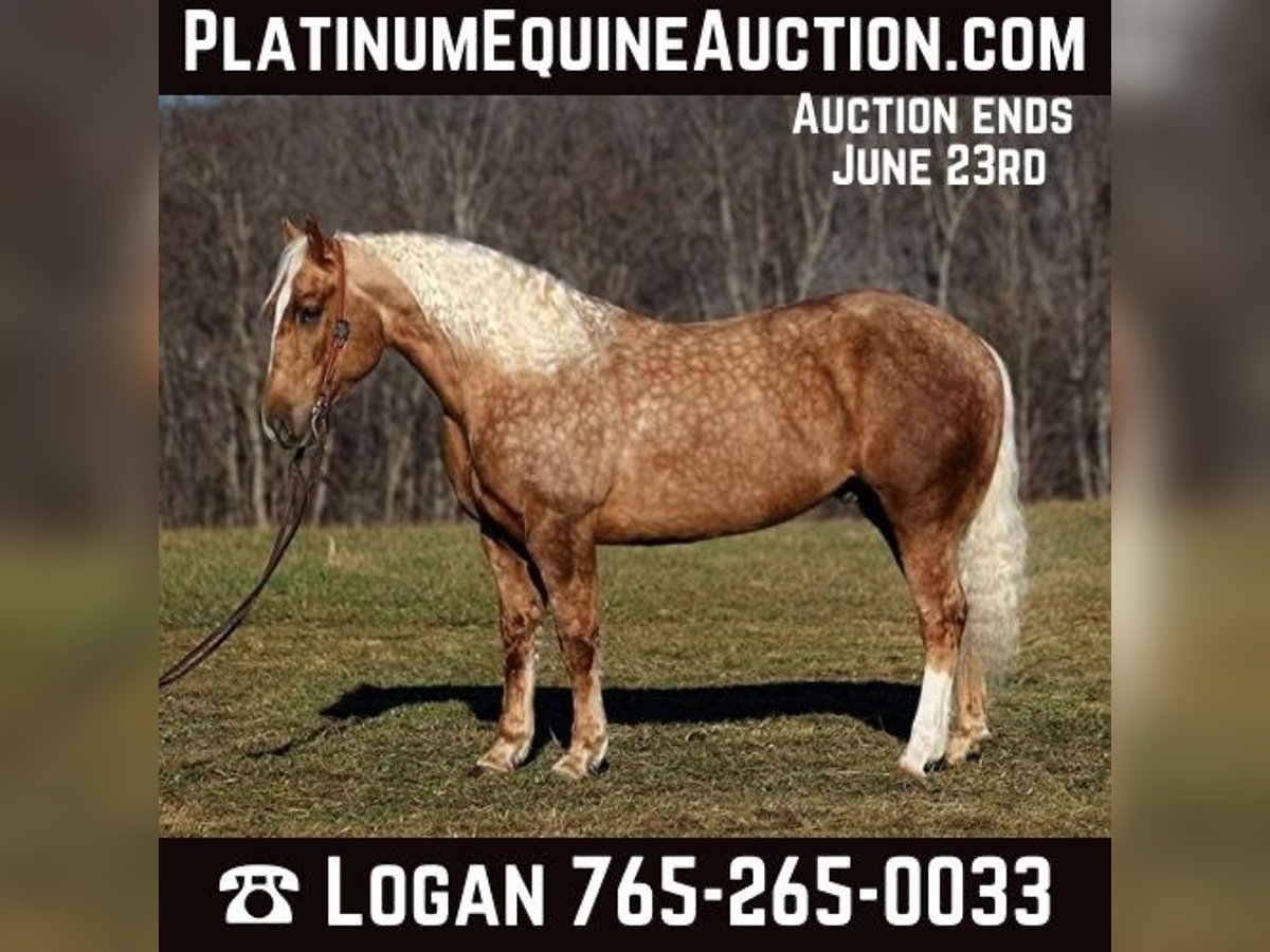 ONLINE AUCTION Place your bids at www.PlatinumEquineAuction.com Starting Bid $3500 Auction ends June 23rd, 2024 Need a new saddle? Check out White Rock Saddles on our website or Facebook! Dream horses do exist and Aspen is living proof of that! Talk about a horse that gets ALL of the looks where ever he goes!!! Aspen is a super stout built Golden Dappled Palomino Draftcross gelding standing around 15.2hh and he is 6 years old! In the fall/winter Aspen has more dapples than your eyes can count, as he is a high contrast dappled palomino. In the summer he is a dark golden palomino with chocolate highlights… he is always BEAUTIFUL!!! Aspen has been with us for almost 2 years now and we used him as my personal horse. He went through the natural horsemanship training and learned some tricks a couple years ago, where he would bow and lay down. Aspen has been used to around cattle and has caught wild ones, (roped/tied down), he has been used in the branding pen and used to doctor as well. He has been ridden down the highways, we have had him in town and he is very traffic safe. Aspen is great on trails and he will cross creeks, ditches, logs and navigate rough rocky areas. He has a smooth jog, a VERY VERY nice easy to set lope, a good stop, spins a circle both ways and backs with ease! He has been exposed to all kinds of wildlife such as deer or turkey or other animals like cows or dogs and will go anywhere that he is asked too. He has been rode many miles in the mountains of Eastern Kentucky and encountered every obstacle possible on the trail. He will go up or down even the steepest slopes, across deep creeks, over downed trees, and over all types of rough terrain while still being sure footed. Aspen is not cinchy, cold backed, does not crib or weave. Located in Level Green, KY. Feel free to call Moore Trained Horses Logan 765-265-0033 with any questions. ONLINE AUCTION Place your bids at www.PlatinumEquineAuction.com Starting Bid $3500 Auction ends June 23rd, 2024 Need a new saddle? Check out White Rock Saddles on our website or Facebook!
