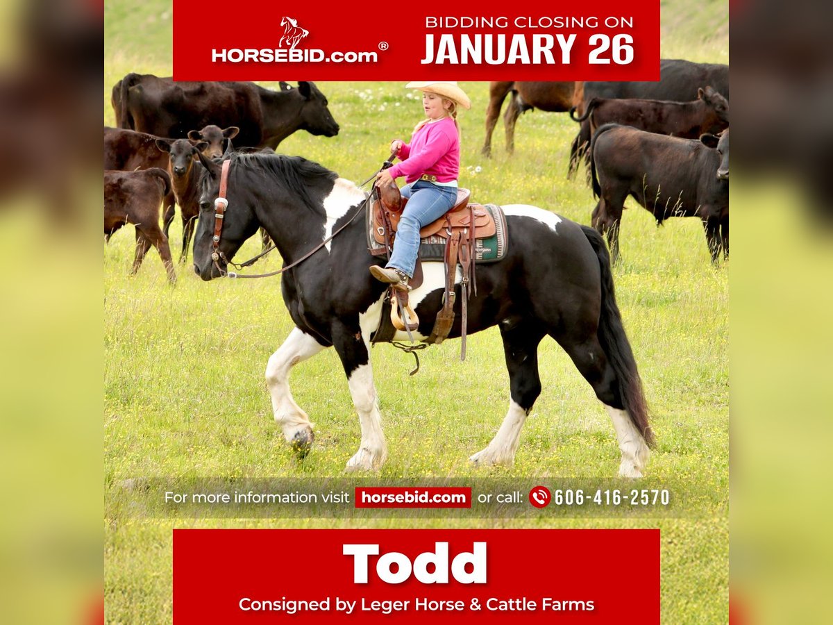 𝐉𝐀𝐍𝐔𝐀𝐑𝐘 ⭐️𝑨𝒍𝒍 𝑺𝒕𝒂𝒓 𝑳𝒊𝒏𝒆𝒖𝒑⭐️ Happening now thru MONDAY | JANUARY 26th - Available EXCLUSIVELY on HorseBid's website! For more details and to register visit: www.Horsebid.com CONSIGNOR CONTACT: Leger Horse & Cattle Farms 606-416-2570 LOCATION: Crab Orchard, KY BREED: Spotted Draft Horse/Quarter Horse Crossbred REGISTERED: No REGISTERED NAME: Todd COLOR: Black and White HEIGHT: 16 AGE: 8 GENDER: Gelding Todd and Tucker are a dynamic duo that you sure do not run across every day! These boys are so very special! They are Spotted Draft Horse/Quarter Horse crossbreds and are full brothers. Todd is 8 years old and Tucker is 9. They were raised by some good Amish friends of ours until we purchased them a year and a half ago. These two have endless experience in just about everything you could imagine. From being phenomenal driving horses, to having the smoothest one-step lope, to being one of the best hands around the ranch, to even being trick horses- Todd and Tucker are truly the best team of horses we have ever owned. They are 100 percent safe, sound, skilled and experienced horses with the sweetest, most pleasant, willing to please attitude. As Spotted Draft Horse/ Quarter Horse crossbreds, Todd and Tucker have all of the best qualities of each breed. Their size, color, build and disposition come from the draft side of them, with their agility, intelligence and versatility being attributed to the quarter horse in them. Todd and Tucker stand 16 hands and are built wonderfully- they have a big foot and bone, and are thick made with a great conformation. On the ground, Todd and Tucker are complete gentleman. Our little girl who is only 8 can handle either or both of them together with ease, confidently. Even with their size, she knows she can trust them. They are respectful of your space, they stand tied patiently, stand in the wagon patiently and with the extensive liberty work they’ve had, they will even follow you around at the command to come. In the saddle, these boys are a dream ride. They both one-hand neck rein, have a super smooth one-step lope, a big stop and will back up and turn around in a circle like a quarter horse. They take their correct leads both ways and respond to leg pressure. They are completely experienced in both the indoor and outdoor arenas. We’ve also ridden them on countless miles of trails. It doesn’t matter what type of terrain, or what kind of challenge they face- they will take you where you want to go. Our entire family has enjoyed trail riding these guys! From mud to rocks to sliding over steep hills to deep water- they’ve done it all! They are safe and surefooted to get you where you need to go. Todd and Tucker are also amazing driving horses. I could not count the miles they have been driven and worked as a team. They know their job and do it well and look AMAZING while doing it. They are so classy and they move with elegance. They sure do turn heads! They are completely traffic safe as well. We’ve driven them to town, to and through our cattle farm that’s up the road, in parades and even used them in a live drive-thru nativity scene to give people wagon rides! From the tiniest babies to the oldest grandpas, Todd and Tucker safely gave them rides in the wagon! They are surely a trusted team! Todd and Tucker are also trick horses. They have both been trained to lay down and sit up! They are both super intelligent animals. They will also side pass to a mounting block or whatever you choose to mount from. These brothers have also been a huge help around the farm. We have used them to rope wild cattle, move, check and sort cattle, and check fences almost daily. We’ve even taken them to a large scale cattle round up where they helped catch, sort and work over 300 head of cattle over a couple days time! They are also very handy when it comes to opening and closing gates, dragging things around, and moving fences or gates when the need arises. Our Amish friends also used them to feed hay and run equipment. We’ve seen for ourselves his 3-4 year old son drive Tucker with a roll of hay on the wagon while his daddy opened and shut the gate for him. Todd and Tucker are also very familiar with the tarp, whip, and gun. They’ve seen it all many, many times and pay it no mind at all. They’re both great with loading and hauling, they love a bath and stand great for the farrier. They get along well with each other and other horses. They are super friendly to every one they meet. Each time we take them in a crowd, there are countless people who come and pet them. They enjoy the love! They are great in the stall and in the pasture as well. They are easy to catch and will come every time you call for them. They are also great with pets and other livestock as well have dogs, cats and goats that run in and around the barn with them. Both of these horses are truly safe, gentle and easy to get along with. They aren’t exactly the same, but with the wonderful training they’ve had, they are pretty close! Besides some minor differences in their looks, the only thing different about these two is that Todd is laid back and Tucker is SUPER laid back. Tucker is just a touch more lazier than Todd, whereas Todd is just a little quicker to respond. Honestly, that’s the only difference. Our entire family has ridden and enjoyed both of these boys, even our little girl. She has even set up jumps and jumped them! They are such well-trained, versatile animals that are up for whatever task you ask of them! Their potential is unlimited! They could excel in the western, english or driving world! We are offering Todd and Tucker to be purchased separately, or as a team. There will be 2 separate auctions, one for Tucker and one for Todd. If you wish to purchase them as a team, make sure to win the bid on each auction! Please feel free to call or text us, anytime! We would love to chat with you about these boys or
