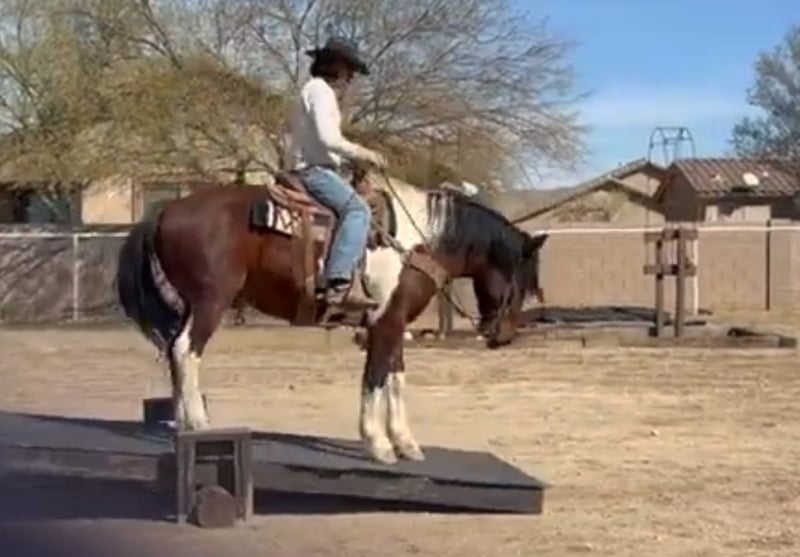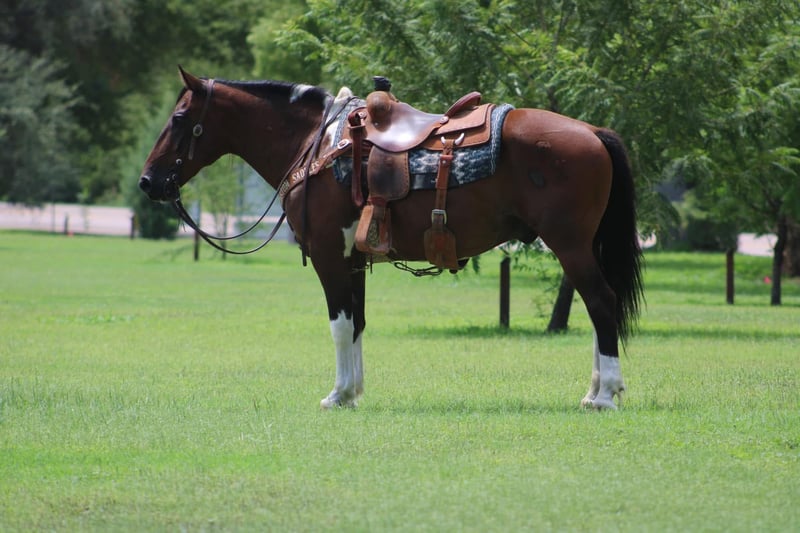 ▪️▫️◾️𝐭𝐡𝐞 𝑴𝒂𝒚 𝐒𝐞𝐥𝐞𝐜𝐭◾️▫️▪️ Happening now thru MONDAY | MAY 4th - Available EXCLUSIVELY on HorseBid's website! For more details and to register visit: www.Horsebid.com CONSIGNOR CONTACT: Jackpot Horses and Ponies 520-906-5997 LOCATION: Marana, AZ BREED: Spotted Draft Cross REGISTERED: No REGISTERED NAME: Chevy COLOR: Bay Tobiano HEIGHT: 15 AGE: 9 GENDER: Gelding Chevy is very unique colored and cool looking draft cross gelding. He turns heads and gets compliments wherever he goes. He is a handy size!! Standing 15 hands, he is big bodied, big boned with some feathering on his legs. Chevy is a ranch horse deluxe. He has been ridden many miles thru the southwestern deserts pushing and sorting cattle. He is good footed, durable and gets around in all kinds of terrain. Chevy will pick his way thru the rocks, climb the steepest hills with no hesitation and cross water when needed. He has been used at the brandings and has no problem putting in a real days work. Chevy also rides in the arena. He has roped the roping sled both heading and heeling and would finish into a super cool rope horse. He navigates thru the cowboy obstacles with no hesitation. Logs, bridges, teeter totters, tires, flags, he does it all including riding up into the back of a truck. Chevy has also been ridden english and has gone over some small rails. If you decide to ride through town no problem, Chevy is not fazed by traffic or noise. He will go wherever you point him. Chevy has been used to hunt on. He is handy broke and smooth to ride. Chevy loads and hauls good. He stands tied to the trailer or to a picket line. He enjoys a cool wash down after a long ride and is always willing to have a cookie or two for a treat. Chevy is current on his routine vaccinations, worming and shoeing. He is always sound and requires zero maintenance of any kind. He has no special feed requirements or restrictions. He will eat whatever is offered to him and he's happy doing it. Chevy has worked a real job, and has a business kind of attitude. If you want a horse that you can go work on or ride in many types of disciplines without worrying about durability Chevy can get the job done. We can help arrange shipping nationwide.