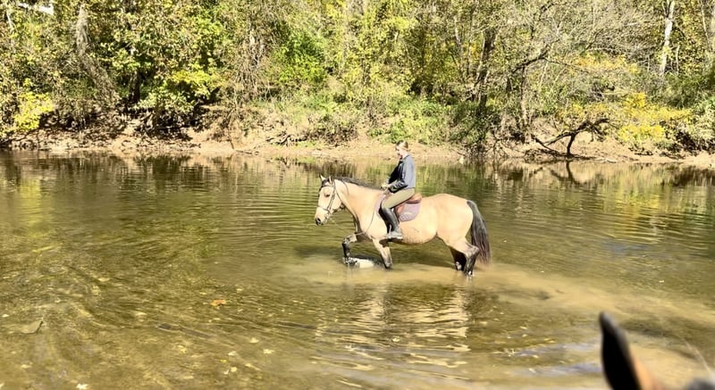 "AVAILABLE ON ONLINE HORSE AUCTION AT www DOT MagicHorseAuction DOT com BIDDING OPEN NOW thru TUESDAY | November 11TH! - BUY IT NOW AVAILABLE! *Final price will be determined on auction site* CONSIGNOR CONTACT INFO: Juli Hubik 717-875-2061 LOCATION: Gap, PA "Meet ✨Bennett✨, a 9-year-old, 15.2 1/2-hand, Perch/Brabant/QH cross gelding. This guy has the prettiest coloring and hair for days! He’s built stout and sturdy, and he’s built to last. He’d be the ideal candidate for group trail rides on an outfit or to be your trusty husband horse. He’s not in a hurry, he likes being out, and he’ll pack anyone you put on him for a trail. He has miles under his belt, a sweet personality on the ground, and good manners. Bennett rides both Western and English and has had a variety of different riders on him. He is big and sturdy enough to carry a heavier rider and is not one to get upset if someone makes a mistake. He’s been up and down the mountains, through creeks and rivers, through bridges and over logs—and has seen just about everything there is to see while out. He is used to wildlife, hikers, bikers, and dogs, and he is traffic- and equipment-safe. He’s been desensitized to the tarp, smoke, fire, flags, and ball. He is used to kids and stands to let them groom and braid his mane and luscious forelock. He has no bad stall or turnout habits and stands to be groomed, bathed, and tacked up. He has great ground manners! Bennett has also been cross-country schooling and would make a great fox hunter or one to take on paper chases! He has athletic ability and is a total natural when it comes to jumping. He has the cutest knees, he’s honest, and he genuinely seems to enjoy it! If you put him in a bad spot, he’ll cover for you, and he’s a super fun, comfortable ride. His trot is great to sit, and his canter is to die for! In the ring, Bennett doesn’t have much experience and doesn’t understand why we’re going around in circles. He’d much rather be out seeing the sights and is best suited for a trail job. He will walk, trot, and canter both ways, but has a little bit of a bored, ""do I have to?"" attitude. That being said, once you point him at some jumps or make things interesting, he’s all for it! If someone wants to continue his arena training, he has a lot of potential; however, he will be more of a project type if you're looking for a Grand Prix dressage horse. He has done lead-line rides and has all the right qualities to make a great therapy horse as well, because this boy is super safe and does love his people! He is UTD on shots, farrier, dentist, and deworming. Located in Gap, PA. Call or text 717-875-2061
