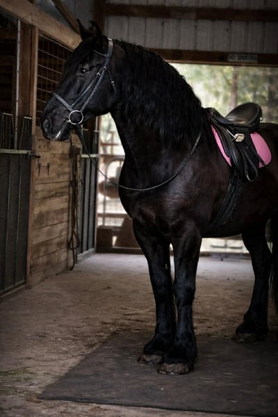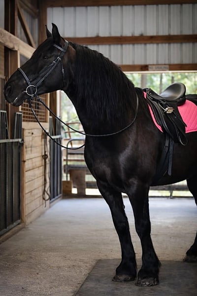 "AVAILABLE ON ONLINE HORSE AUCTION AT www DOT PlatinumEquineAuction DOT com BIDDING OPEN NOW thru SUNDAY | APRIL 19TH! *Final price will be determined on auction site* CONSIGNOR CONTACT INFO: Kyra Malone 813-601-8455 LOCATION: Land O Lakes, FL Diva is a registered 13 year old black Percheron mare standing 16.1 hands. Diva is a gentle, sweet girl that loves people and loves to please. Diva has been all over driving and riding . She has done sleigh rides up north in the winter along with parades and weddings. She has been ridden on trails, hunter paces, fox hunts and has done some low level dressage. She has done weddings and events as well. She has even popped over some small jumps on the hunter paces and fox hunts. She is sound: no maintenance, no lumps or bumps, no side bone, no cpl, no scratches. She stands great for the farrier, bathes, clipping and trailering . She respects all fencing . She has had 2 foals and is a great mom no complications. For more information, contact Kyra at 813-601-8455.