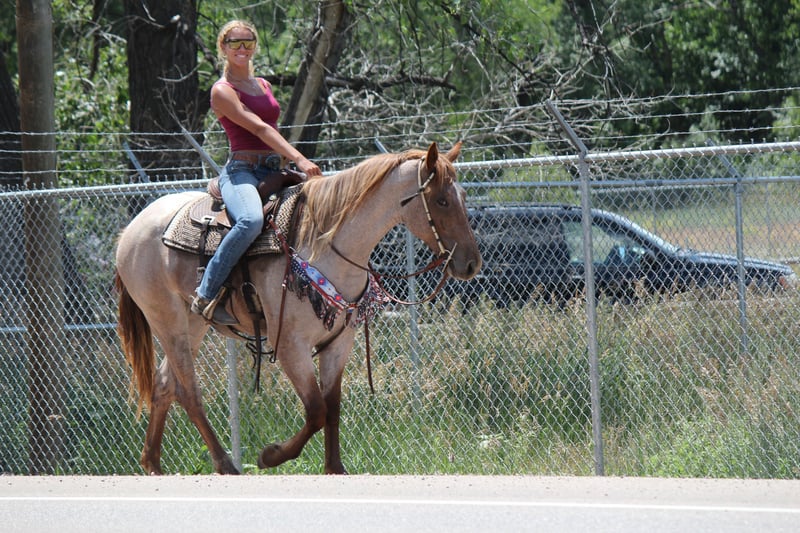 "AVAILABLE ON ONLINE HORSE AUCTION AT www DOT MagicHorseAuction DOT com BIDDING OPEN NOW thru TUESDAY | JULY 22nd - BUY IT NOW AVAILABLE! *Final price will be determined on auction site* CONSIGNOR CONTACT INFO: Dynamite Horses 970-632-3644 LOCATION: Fort Collins, CO ★★ MEET ROXANNE ★★ Striking, Sweet, and Incredibly Versatile | 3-Year-Old Mare | Western & English Foundation We’re thrilled to introduce Roxanne, a standout young mare with brains, beauty, and the kind of foundation that sets her up for greatness in any direction. With her bold color, expressive movement, and confident demeanor, Roxanne turns heads everywhere she goes — and backs it up with an exceptional work ethic and calm, trainable mind. Roxanne is a soon-to-be 3-year-old mare standing just over 16 hands, with a solid, muscular build that gives her presence and power. Think “built like a brick house” — this mare is the definition of sturdy and sound. She’s been started right, handled with consistency, and has already gained extensive real-world experience. We’ve taken her on countless trail rides throughout Fort Collins — through downtown traffic, alongside highways, into busy parks, and even to grab coffee or lunch. She’s never blinked at bikes, strollers, loud music, runners, or unexpected urban chaos. Whether she’s alone or in a group, Roxanne is steady, curious, and composed. She’s been started in both English and Western, and shows natural talent in both disciplines. Her movement is clean and collected, with a flowing walk, rhythmic jog, and balanced lope. She’s learning to carry a frame, pick up correct leads, and is working on flying lead changes, crossovers, neck reining, and cavalettis. On the Western side, she already has a sliding stop, rollback, and the kind of responsiveness that makes her feel like she’s been doing it for years. Roxanne has never offered to buck, bolt, or rear, and has shown nothing but a willing attitude and a desire to learn. She’s been exposed to cattle, has carried a flag, walked over tarps, had ropes thrown off her, and generally takes everything in stride. Whether she’s tracking a cow, navigating an obstacle course, or cruising down the trail, she’s engaged and happy to be part of the job. We’ve trained Roxanne ourselves and have watched her confidence grow with each new experience. She’s been ridden by multiple riders and has always shown adaptability and grace. With her size, movement, and mind, she’d be a great fit for someone looking to take her into drill team, ranch versatility, English flatwork, or trail competitions. She could easily be a fun, competitive mount — or your new go-to partner for exploring the backcountry. Roxanne is kind, brave, and built to last. She has the kind of foundation that opens doors in any direction and the personality to become someone’s once-in-a-lifetime horse. Come meet this phenomenal mare and see just how special Roxanne truly is.