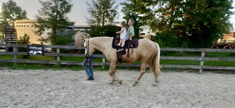 AVAILABLE ON ONLINE HORSE AUCTION AT www DOT MagicHorseAuction DOT com BIDDING OPEN NOW thru TUESDAY | JULY 22nd - BUY IT NOW AVAILABLE! *Final price will be determined on auction site* CONSIGNOR CONTACT INFO: Juli Hubik 717-875-2061 LOCATION: Gap, PA Who doesn’t love a pretty blonde? Meet Charlotte—she’s a 4-year-old, 15.1–15.2hh Percheron/QH cross palomino mare. This girl is built right—she’s got all the curves, she’s sturdy, and she’s the perfect size for a variety of riders. Not only does she have the beauty, but she was blessed with brains too! She rides both English and Western, and she’s so broke to drive you could hitch her up in your sleep. She is the ideal family horse—you can pile multiple kids on her for a leadline ride or send the husband out on a trail! She always takes care of her riders and is totally a lovebug on the ground—especially with the littles. She is a rose among the thorns and truly one of the nicest mares we’ve come across. On the trail, Charlotte has packed a variety of riders for us, including complete beginners! She is careful, slow, and surefooted. She is always happy to go out, with a lovely attitude and a curiosity for adventure. Nothing can get under Charlotte’s skin. We have ridden her all over—through the woods, along the highway, in open fields, and into the river (she lovesss a good swim). She’s as unflappable as they come out on the trail. She will lead but generally ends up in the rear due to her slow, plodding nature. She’s in no rush and enjoys taking in the sights for a relaxing ride. She’s as comfortable as a couch and one you could ride all day long. She is absolutely no spook, buck, rear, or bolt—and no silliness (except maybe grabbing a quick snack when she gets the chance). This girl does love her food. Even if you aren’t a “mare person,” we can guarantee Charlotte will change your mind. She’s lovely and kind in every way. Under harness, Charlotte is experienced and reliable beyond her years. She is able to hitch up solo and drives away from the barn without a worry or care in the world. She’s been on our busy road with all kinds of traffic flying by her (including semi-trucks and loud motorcycles). She is as unflappable as they come and solid in a busy environment. She’ll even stand tied and wait for you to get your groceries and load them in the carriage. She’s been hitched single, double, and to various farm equipment. She’s driven through tunnels, water, farm lanes, construction sites—and the busiest of roads. She’s essentially dummy-proof to drive. She’s light in the reins and responsive to voice signals. We trust her so much under harness, we’ve had our baby on board—she’s never taken a wrong step. Charlotte is also amazing in the ring! This girl is very hard to find a flaw in. She’s like riding a couch—so round and comfortable. She has a solid walk, trot, and canter both ways. Her canter is to die for, and she has the easiest trot to sit! Her favorite gait is probably the walk, and she’s not one that’s ever going to run away with you. She’s happy to mosey around on a loose rein but will happily put in the work and go when asked. Her brakes are impeccable—she will stop on a dime with just a “whoa” or a shift of your seat. She’s packed around the kids and adult beginners like a champ. She’s perfect for leadline rides and genuinely seems to love children with her whole heart. She will lower her head to their height just to get pets and love. She is also able to be athletic and has been coming along lovely over jumps. We’ve been keeping it light with the jumping due to her age, but we couldn’t ask her to do a better job. She’ll pop over cross rails and small verticals in the ring, and she’s even been out cross-country schooling! She is cute and honest in every way. With the right encouragement, she could easily excel in fox hunting or lower-level dressage. She has the proper foundation to go in any direction and is a superstar in every way. On the ground, Charlotte is safe to work around. The kids can run around her, brush her, lead her in and out of the field, and tack her up. She’s one that comes up to you in the pasture begging for attention. She loves people and will put her head in your arms for a hug. She’s gentle taking treats and loves her cookies. She is well-behaved for the vet and farrier, and she loads right into the trailer. If you want a solid young horse to continue growing with—one that you don’t have to worry about and can relax on and with—Charlotte is all that and so much more. She’s quickly become a barn favorite, and we have no doubt she will thrive in any environment! We want the best home for this special girl. Charlotte is UTD on shots farrier dentist and coggins.