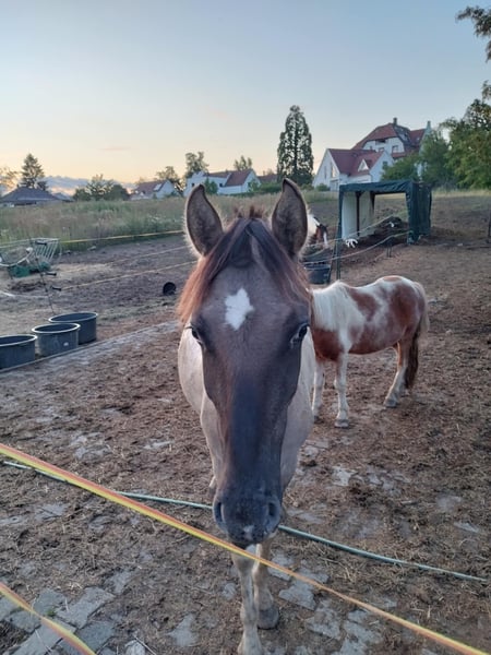Jungpferd zu verkaufen Hallo, aufgrund verschiedener persönlicher Umstände (genaueres gerne per PN) muss ich mein junges Pferd verkaufen, um meine zwei älteren weiterhin halten zu können. Es ist also dringend, aber mir ist vor allem ein gutes Zuhause wichtig. Opla ist diesen Monat 2 Jahre alt, aktuell etwa 1,40 m groß, wächst noch und wird voraussichtlich ein Endmaß von ca. 1,48 – 1,50 m erreichen (kleines Pferd). Männlich. OC. Er ist sehr gut gehandhabt, geht spazieren an der Hand – zu Fuß, neben dem Pferd, mit dem Roller und dem Fahrrad in allen drei Gangarten. Er hat vor fast nichts Angst und kennt schon sehr viel. Er ist tierärztlich auf dem neuesten Stand, Osteopath im Januar und regelmäßig beim Hufbearbeiter. Er lebt auf der Weide mit einem Pferd und einem Pony. Er ist respektvoll und rangmäßig im Mittelfeld. Positive Punkte: Er ist ein absoluter Schatz, liebt Streicheleinheiten, Putzen und Zeit mit Menschen zu verbringen. Er ist wie ein kleiner Hund. Er mag Kinder sehr und scheint Männer zu bevorzugen. Er ist mutig, sehr anhänglich, ruhig, arbeitsfreudig und lernt schnell. Negative Punkte: Er ist wirklich sehr anhänglich (kein Scherz ), hängt stark am Menschen und muss noch lernen, den persönlichen Raum besser zu respektieren. Er ist sehr aktiv (was aber nur für meine zwei älteren Pferde ein Nachteil ist). In Merkwiller-Pechelbronn, Bas-Rhin