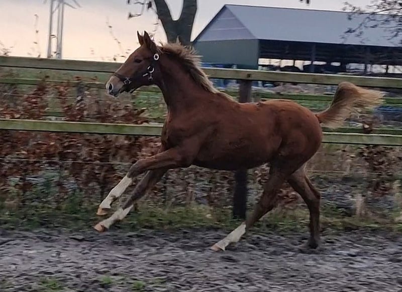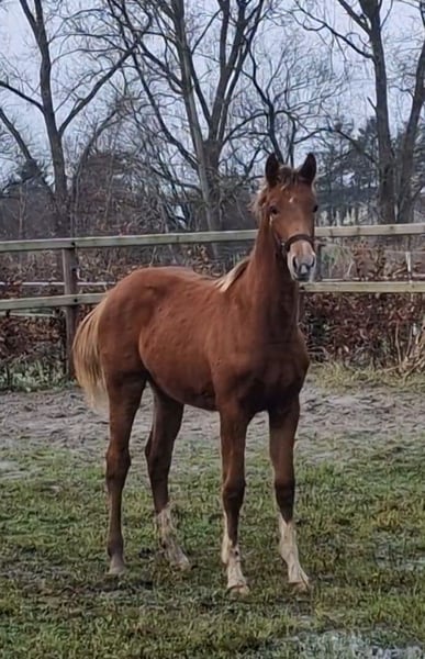 Five Minutes to heaven ist am 4.4.25 geboren und ist eine bewegungsstarke , elegante Lady. Der Vater hat aktuell den Siegerhengst in Oldenburg gestellt. Ihre Mutter, die Staatsprämienstute von DON SCHUFRO vererbt immer ihre Topqualität . Dieses Stutfohlen ist oldenburger verbandsprämiert und die Qualität somit über OL bestätigt. Daher ist dieses tolle Fohlen für Sport oder Zucht gleichermaßen ideal. Diese überragende Abstammung ist so nicht mehr zu kriegen...