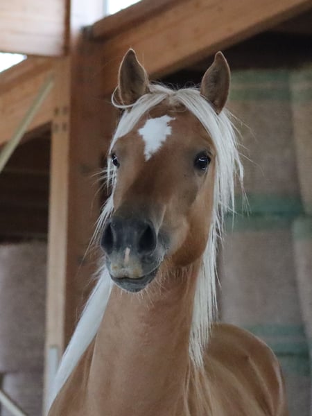 Barox – Edelbluthaflinger-Junghengst mit Präsenz, Charakter & Perspektive Geboren am 05.05.2023, präsentiert sich Barox als moderner Edelbluthaflingerhengst mit klaren Linien, korrektem Fundament und einem ausdrucksstarken Auftreten. Er überzeugt durch seinen ruhigen, aufmerksamen Charakter und bringt alle Anlagen für eine erfolgreiche Zukunft als Reit- oder Fahrpartner mit. 🧬 Abstammung mit sportlicher Substanz Vater: LH Barion – Reservesiegerhengst der Süddeutschen Körung 2021 – Reservesieger der Hengstleistungsprüfung mit der Topnote 8,46 – Vater mehrerer Championatsfohlen Mutter: Oskana (v. L Willi-V a. d. SP Olina v. Argentinus) – Aus einer leistungsgeprüften Mutterlinie mit Staatsprämienstute Olina – Großvater Willi-V war hoch erfolgreich im Sport: • Siege im Springen bis Klasse A • Siege in der Dressur bis Klasse L • Platzierungen in FEI-Jugend-Dressuren – Über Argentinus sportlich abgesichert auch in dritter Generation 📝 Barox eignet sich hervorragend für Sport und Freizeit mit Anspruch. 🧹 Gesundheit & Aufzucht – Geimpft & regelmäßig entwurmt – Beherrscht das Fohlen-ABC (Putzen, Führen, Anbinden, Hufe geben) – Aufzucht im Herdenverband – robust, sozial und artgerecht ✨ Charakter & Potenzial Barox ist freundlich, klar im Kopf und zeigt sich im täglichen Umgang sehr umgänglich und lernwillig. Ein echter Rohdiamant für Reiter oder Fahrer, die Wert auf solide Grundlagen, ein sportlich geprägtes Pedigree und einen ehrlichen Charakter legen.