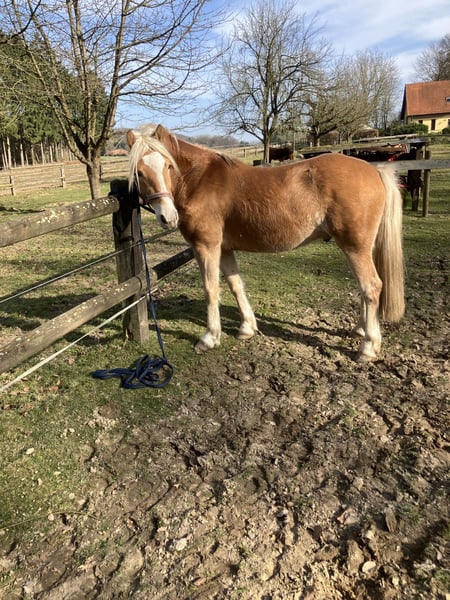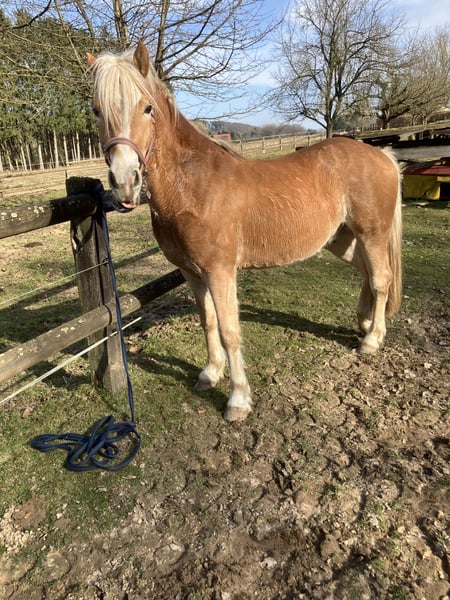 Naxos wird im Mai ein dreijähriger Edelbluthaflinger Wallach sein, den wir an reiterlich versierte Interessenten weitergeben möchten. Es sollte jemand sein, der/die einerseits das Einreiten übernehmen würde, oder anschließend das Pferd weiter entwickeln kann. Naxos ist im Moment noch reiterlich roh - er wurde longiert und geführt. Er wurde bei uns geboren ( private Zucht)und von mir täglich betreut. Sein Vater ist ein Sohn von Nevio - erfolgreicher Zuchthengst, Europachampion - seine Mutter hat viel Edelblut im Pedegree. Wir suchen also eine Person, die diesen weiteren Weg mit Naxos langfristig gehen möchte. Dabei wäre uns dieses wichtiger als letztlich der Preis ( keine Händler!). Was sich daraus entwickeln kann, zeigen die Bilder / Videos von seinem Vollbruder Nevio . Er ist jetzt als fünfjähriger sein erstes Turnier gegangen und zeigt viel Springvermögen. Das kann auch aus Naxos werden.