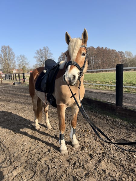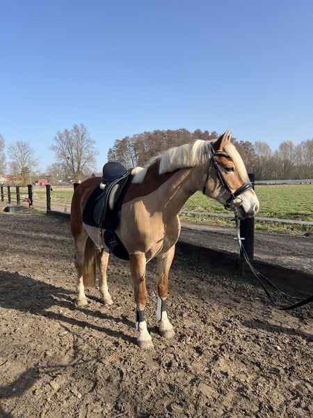 Ambitious Family Pony / Competition Prospect For sale is a 2014-born noble blood Haflinger mare, a stunning granddaughter of the renowned sire Alpenbue, leaving nothing to be desired. Umay impresses with her versatility, rideability, and her completely uncomplicated nature. In 2018, she completed her performance test in Lürschau in the breeding discipline of riding, achieving an excellent 2nd place. After a period as a broodmare, she competed for the first time in 2024 and immediately convinced with very good results: • Dressage up to Class A with excellent scores • Show jumping up to Class E In 2025, she also foaled a wonderful, healthy stallion foal, further demonstrating her quality as a broodmare. Umay is suitable both as a high-quality leisure and family horse and for ambitious riders seeking a reliable and motivated partner. She is well-behaved, human-oriented, and uncomplicated in daily handling. She has a pleasant, consistently well-regulated go and remains manageable at all times. No health issues are known. With an approximate height of 14.9 hh, she is an ideal size for many riders. After her foal-raising break, she is back in training and available for trial rides at any time. A fee of €50 will be charged for the trial ride. Location: 38553 Videos will only be sent upon serious interest. Priority goes to the horse’s quality over price.
