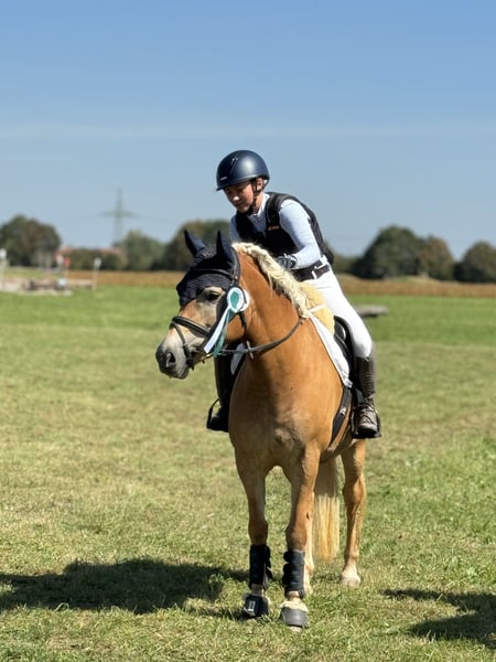 Maleika ist eine typvolle Edelbluthaflingerstute (7,422%) mit sehr gutem Bewegungs- sowie Sprungablauf und herzlichem Charakter. Die Stute überzeugt durch ihre Leistungsbereitschaft, ihren Charme und ihre vielseitige Einsetzbarkeit. Sie ist sowohl für den Sport als auch für den Freizeitbereich interessant und bringt zudem beste Voraussetzungen für die Zucht mit. Im Umgang ist sie brav, menschenbezogen und freut sich über jegliche Aufmerksamkeit. Sie ist ein echter Goldschatz - immer lieb und bemüht, egal ob auf dem Platz, in der Halle oder im Gelände! Maleika ist eingetragen ins Stutbuch I und hat ihre Stutenleistungsprüfung in München-Riem mit der Endnote 8,08 gewonnen. Am Turnier ist sie mehrfach gegen Großpferde Geländepferde E platziert mit Noten bis 8,2 und Geländepferde A gestartet. Außerdem ist sie Springpferde A platziert und Dressurpferde A gelaufen. Sie verdient ein 5-Sterne-Zuhause und wird nur aufgrund von Wegzug der Reiterin verkauft. Weitere Informationen und Videos senden wir gerne auf Anfrage. (Auch per WhatsApp unter 0172-8196797) Probereiten bei ernsthaftem Interesse nach Terminvereinbarung möglich.