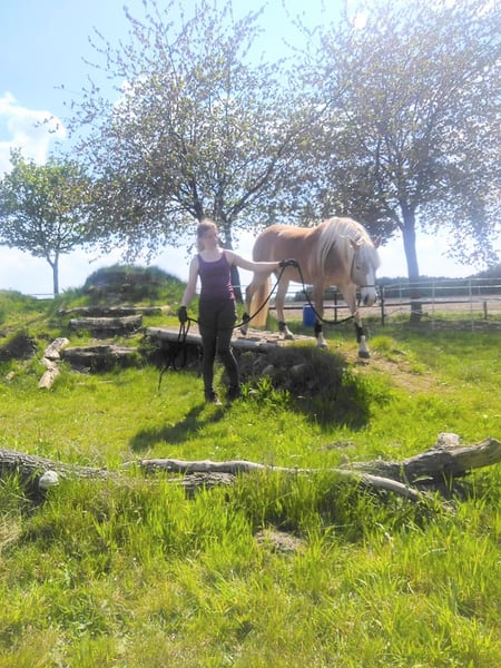 Hallo, leider muss ich mich von meiner knapp neun-jährigen (Edelblut-)Haflingerstute Pauline trennen, da ich in den nächsten Jahren weder die finanziellen Mittel zur Verfügung haben werde, noch ihr zeitlich gerecht werden kann. Diese Entscheidung fällt mir wirklich schwer, allerdings kann ich ihr bereits seit längerem, und nun einmal voraussichtlich auch noch längerfristig, nichtmehr gerecht werden und muss diese Entscheidung daher in ihrem Sinne treffen. Zu ihr: Sie ist eine sehr lernwillige, motivierte und unerschrockene Stute - gleichzeitig aber auch dominant und hat in einigen Situationen definitiv eine geringe Frustrationstoleranz (bleibt mir gegenüber dabei aber grundsätzlich aufmerksam), wodurch sie nicht für Anfänger*innen/ Wiedereinsteiger*innen geeignet ist. Zu Beginn testet sie ihre Grenzen sehr gerne, allerdings ist sie, sobald man ihr Vertrauen gewonnen hat, sehr loyal und möchte gefallen. Sie hat viel Energie und möchte entsprechend abwechslungsreich beschäftigt werden. Ausbildung: Aufgrund einer im Herbst 2024 diagnostizierten lateralen Fesselträgerursprungsdesmopatie VL mussten wir für ein gutes halbes Jahr pausieren. Mittlerweile darf/ soll sie laut der Klinik wieder voll gearbeitet und auch bedingt geritten werden - allerdings fällt es mir seither sehr schwer, sie normal zu arbeiten, ohne mir neue Probleme "vorzustellen"/ einzubilden. Somit wurde sie im letzten Jahr nur unregelmäßig geritten. Durch ihre lange Pause fehlt ihr natürlich weiterhin einiges an Kraft und Balance, weswegen sie vor vermehrtem reiten verstärkt antrainiert werden müsste - hierbei sollte selbstverständlich weiterhin ein Blick auf ihren aktuellen Zustand geworfen werden. Des weiteren kennt sie longieren, Ansätze der Doppellonge und klassischen Handarbeit, leichte Zirzensik in der Freiarbeit und geht alleine ins Gelände. Grundsätzlich sehe ich sie als Freizeit-/ Geländepferd und hatte immer den Traum, irgendwann mit ihr in die Working-Equitation zu schnuppern - unsere bisherigen Schnuppereinheiten auf einem kleinen Trail-Platz haben mit ihr immer viel Spaß gemacht! Auch das Einfahren könnte ich mir aufgrund ihres selbstbewussten und neugierigen Charakters prinzipiell vorstellen. Hier nocheinmal zusammengefasst die groben Eckdaten zu ihrer Gesundheit: - ausgeheilte laterale Fesselträgerursprungdesmopathie VL - pausenbedingte Steifheit/ anfängliche Arthrose in den Sprunggelenken - Fehlstellung in der Hinterhand (bereits von Fohlenalter an, entsprechend im Alltag kein Problem) - Barhufer - regelmäßig geimpft und entwurmt - regelmäßige Zahnkontrolle - brav bei Tierarzt und Hufbearbeitung Ich wünsche ihr ein neues Zuhause, in welchem sie in einer ruhigen Herde viel draußen steht (gerne im Offenstall, gemischte Herde möglich) und eine*n Besitzer*in hat, der ihr die volle Aufmerksamkeit schenken kann, um mit ihr gemeinsam Neues zu lernen und ihr endlich wieder eine Aufgabe zu geben. Sie ist eine Partnerin für die erfahrene Pferdemenschen, die ein charakterstarkes Pferd suchen – ehrlich, sensibel, arbeitswillig und mit Ecken und Kanten, die es nie langweilig werden lassen - , ohne vor der Krankheitsgeschichte zurückzuschrecken. Je nachdem wie deine aktuelle Situation aussieht, besteht gegebenenfalls die Möglichkeit einer Vermittlung zur Verfügung. Hierbei kann eine spätere Übernahme offengehalten werden, allerdings müssten sämtliche Kosten von dir getragen werden. Die genauen Rahmenbedingungen müssten dann natürlich individuell geklärt werden. Solltest du eher an einem Verkauf interessiert sein, können wir auch diese Alternative gerne besprechen! Wenn ich dein Interesse geweckt habe, freue ich mich über Nachrichten und erzähle gerne noch mehr!
