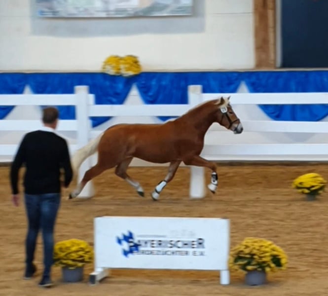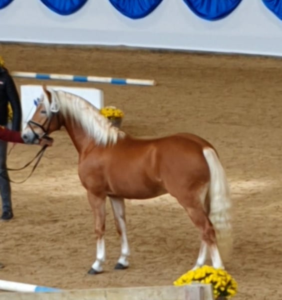 Caballo de cría pura, elegante y deportivo, de raza Edelbluthaflinger, con carácter amistoso y fácil de manejar. Conoce el remolque, el salto libre, el trabajo en línea y el trato diario. No es un caballo para principiantes, ya que tiene mucha energía y necesita un jinete que le dé instrucciones claras. Ha crecido junto a otro potro y en verano pastorea en el campo, mientras que en invierno sale a diario a la pradera.