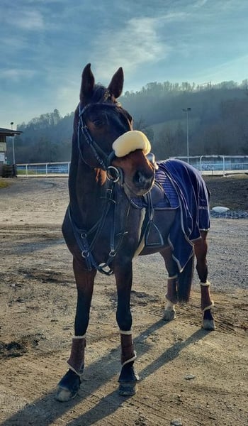 Ich suche für meinen 12-jährigen Wallach ein neues Zuhause. Im Stall ist er sehr lieb, verschmust und menschenbezogen – ausgiebiges Putzen und Betüddeln genießt er sehr. Beim Schmied, Tierarzt sowie beim Verladen ist er absolut brav und unkompliziert. Im Gelände ist er motiviert und zuverlässig. Er geht sehr gerne ausreiten, sowohl alleine als auch in der Gruppe. Außerdem liebt er Wasser – egal ob beim Durchqueren von Bächen oder beim Baden im See. Auf dem Reitplatz zeigt er wenig Freude und aufgrund seines starken Charakters, kann es dort schnell zu Herausforderungen kommen. Daher wünsche ich mir für ihn ein Zuhause, in dem er lange Ausritte und viele Schmuseeinheiten genießen darf. Weitere Details sowie Preis auf Anfrage