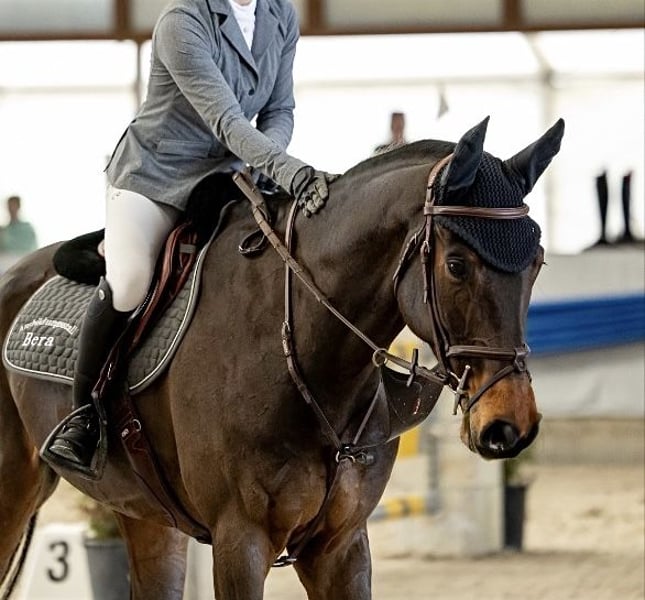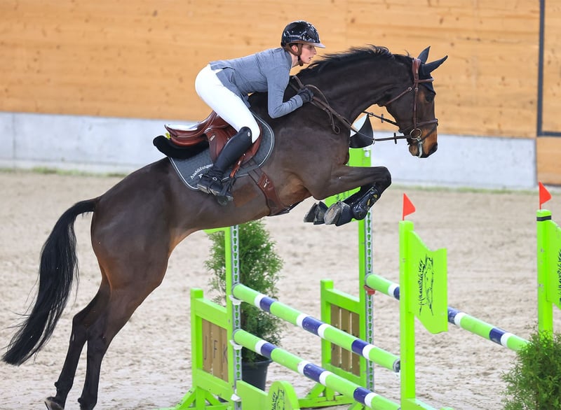 Yegua castrada suiza de 7 años, aproximadamente 1,67 m de altura, directamente del criador. Hasta 1,10 m de altura en competición. No es una yegua para principiantes, pero en general es una compañera de deporte sencilla que aún necesita ganar experiencia. Tiene potencial para el nivel superior en el deporte, pero también puede ser una buena opción como caballo amateur para saltos menores. Para consultas, por favor, solo por WhatsApp o por teléfono al 01737482545.