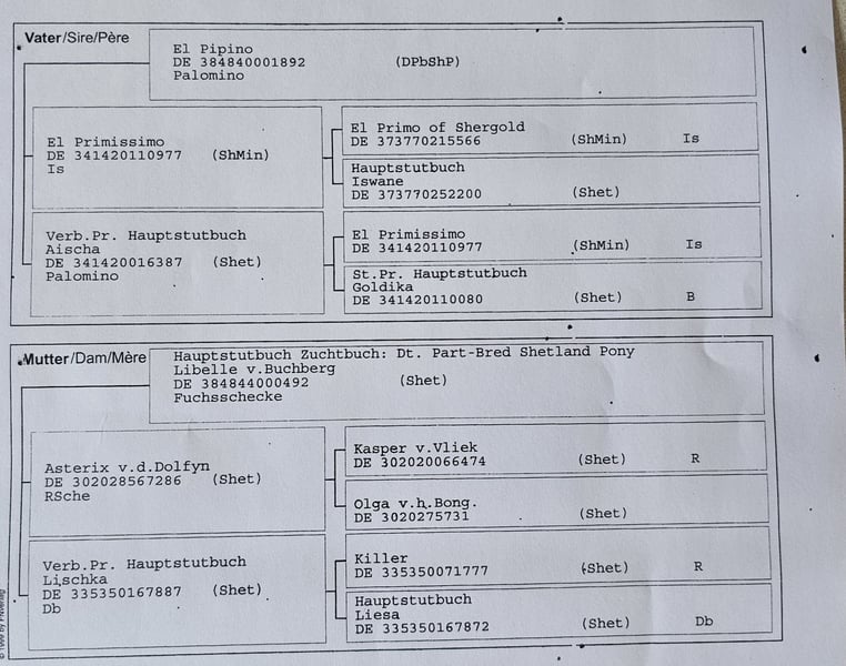 El Pinto von Buchberg to wyrazisty, bezczelny ogier szetlandzki w specjalnym kolorze. Ogier Księga I licencjonowany i nagradzany wynikiem 8,6 i tym samym ogiera wydajnościowego. Ogier Shetty z charakterem i motywacją. Bardzo towarzyski na powozie i pod jeźdźcem. Osłony w naturalnym skoku. Zarejestrowany w Niemczech. Warunki hodowli na życzenie!