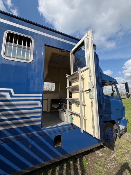Zum Verkauf steht dieser 4 Pferde LKW von Mercedes mit einem Böckmann Aufbau