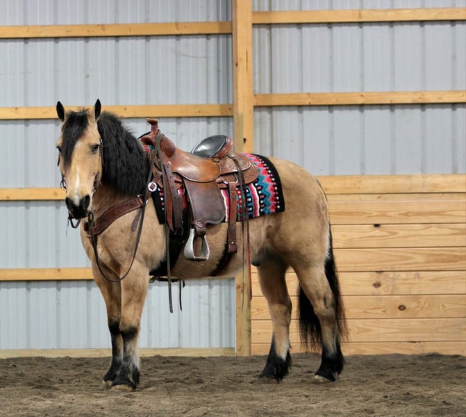 💎 𝐓𝐇𝐄 𝓓𝓲𝓪𝓶𝓸𝓷𝓭 𝐒𝐇𝐎𝐖𝐂𝐀𝐒𝐄 💎 Happening now thru MONDAY | FEBRUARY 23rd - Available EXCLUSIVELY on HorseBid's website! For more details and to register visit: www.Horsebid.com CONSIGNOR CONTACT: Rockin S Farm 814-810-7918 LOCATION: Rebersburg, PA BREED: Fjord cross REGISTERED: No REGISTERED NAME: Charlie COLOR: Buckskin HEIGHT: 13.3 AGE: 12 GENDER: Gelding 💥💥 Charlie 💥💥 As unique and individual as you will find! We are honored to be able to offer you this gorgeous buckskin Fjord cross! A rare find in the buckskin color that is very easy on the eyes and is also very well broke to ride and drive, he drives super nice in a team as well with his full brother Chad also listed on horsebid, if you are looking for a team that have been there and done that check out Charlie and Chad , they've been driven in parades and used to haul manure and make hay , so they've been exposed to most anything possible! Charlie rides excellent out on the trails and will go wherever you point him without hesitation he will step over logs and go through creeks, he's been ridden in traffic with no issues whatsoever, he is friendly and easy to get along with, he would be a perfect candidate for a lesson program or beginner horse or your very own heart horse with his friendly personality and easy going disposition plus he's a handy size that's built Stout enough to carry any rider, he will also ride in the arena and has a Smooth walk-trot-canter and safe for all ages from children to adults Chad and Charlie are really dream horses that don't come along very often especially not in the fancy buckskin color so don't miss your chance ! Charlie sells 100% sound and requires no maintenance, he is healthy and up-to-date on farrier and dewormer as well as a current Coggins and health certificate ready for his forever home We are happy to assist in arranging transportation anywhere in the US If you have any questions on Charlie or Chad please feel free to call Sam 814-810-7918, we are happy to have you come meet him or answer any questions you have