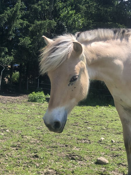 For sale: a stunning Fjord stallion, born in 2023. He is perfect for leisure riding and impresses with his friendly temperament and hardy nature. Ideal for riders seeking a reliable and charming horse. If you would like additional photos or videos or are interested, I am happy to provide further information.