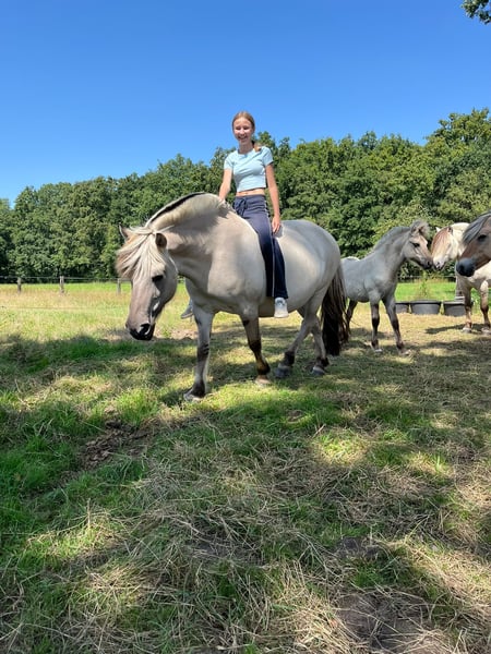 Für diese ultra liebe und hübsche Dame suchen wir ein neues Zuhause. Perla von der Bilterhoeve wurde am 17. April 2014 geboren und ist somit jetzt 11 Jahre alt. Perla ist eine super liebe und unkomplizierte Stute im Umgang. Sie ist ordentlich geimpft, entwurmt und die Zähne wurden kürzlich gemacht. Sie ist in der Confederatie van het Paard eingetragen und hat selbstverständlich Stammbaumunterlagen. Sie hat eine außergewöhnliche Abstammung, ihre Mutter Maigråa wurde aus Norwegen importiert und hatte eine Stockmaß von 1,48 m, ihr Vater ist der norwegische Hertug. Der Vater von Perla ist der hübsche Brijol, der in verschiedenen Ländern, darunter auch in seinem Heimatland Norwegen, wo er sogar Champion wurde, anerkannt ist! Perla hat bereits für verschiedene hübsche Nachkommen gesorgt. Sie ist jetzt auch tragend von unserem Hengst Fjordpferde-Hengst Gamleskolens Thule und wird am 17. April 2026 fohlen. Perla hat einen sehr schönen Typ, gute Beinstellung und sehr raumgreifende Gänge! Diese vererbt sie auch gut weiter. Perla wurde als Fohlen Fohlenchampion der Region Antwerpen und zudem auch noch Nationalchampion 🏆. Sie erzielt stets sehr schöne Punkte bei der Prüfung, im letzten Jahr war sie in NL sogar 2. in einer starken Serie von 8 Stuten. Sie kennt ein wenig Basis unter dem Sattel, ist aber ansonsten ein unbeschriebenes Blatt, ideal also, um selbst noch weiter mit ihr zu wachsen. Perla muss noch etwas bei uns bleiben, bis ihr Fohlen alt genug ist. Interesse an dieser hübschen Dame? Kommen Sie gerne vorbei, um sie kennenzulernen, oder senden Sie für weitere Informationen eine Nachricht. Perla fällt in die höhere Preisklasse.