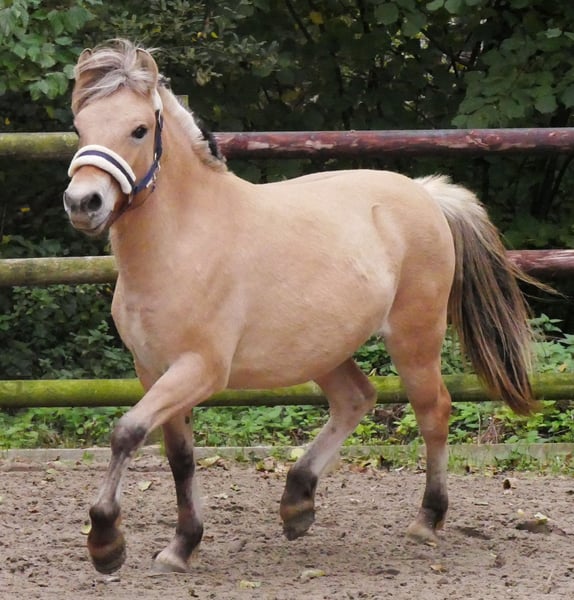 Name: Vara Van't Gors Gender: Mare Date of Birth: June 18, 2024 Height: 125 cm Breed: Norwegian Fjord Horse Pedigree: Lyckängs Tempo x Reinar This beautiful, small Fjord mare is available for sale. Vara currently lives in a herd with three other Fjord mares. She is healthy, robust, and can also be kept in an open stable. Please feel free to contact us at +49 176 62495567 if you are interested. We also offer affordable transportation for your new horse.