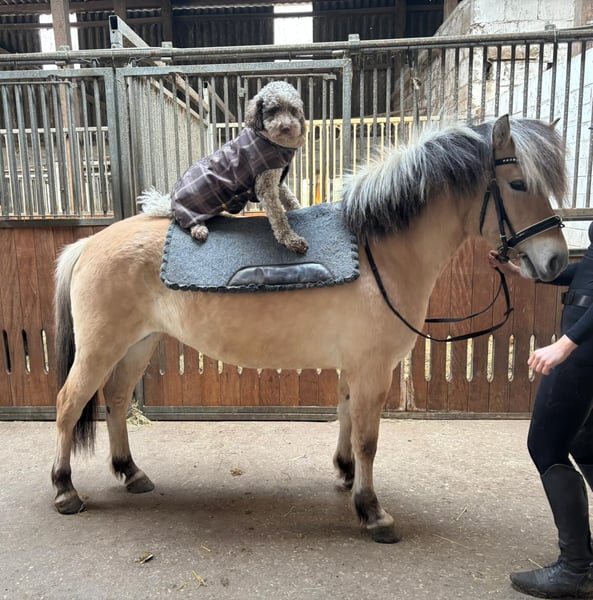**Verkaufsanzeige: Fjordpferd – junge, charmante Stute für die Freizeit** Direkt vom Züchter kommt die hübsche MAGDA, eine reinrassige Fjordstute mit hervorragendem Papier. Magda ist in einer Fjordherde in artgerechter und rasseförderlicher Robusthaltung aufgewachsen. Sie ist ein mittelrangiges Pony und hat keinerlei soziale Auffälligkeiten. Aktuell lebt sie in ihrem Ausbildungsstall in einer gemischten Herde von Fjordis und Reitponys in einer Kombi aus Boxenhaltung (nachts) und Riesen-Pony-WG tagsüber draussen. Sie läuft barfuss und hat sehr gutes Hornwachstum. Die junge Fjordstute ist neugierig und super freundlich im Umgang. Tiefenentspannt bei der Bodenarbeit und immer positiv neuen Aufgaben gegenüber! Sie war beim EInreiten sehr unkompliziert und kann aktuell schon in allen drei Grundgangarten frei geritten werden. Wir würden sie allerdings noch nicht für Anfänger empfehlen, da die Grundlagen weiter gefestigt werden müssen und Magda mit ihrer Arbeitsfreude wirklich gefördert werden sollte! Sie wird mal ein ganz fein zu reitendes Pony, das alle Vorzüge eines Fjordis vorweist. Sie hat schon erste Gruppenausritte mitgemacht und war hier wirklich brav bei der Sache. Sie hat aktuell ein Stockmaß von 1,40m, deckt dabei sehr gut ab. DIe Reiterin auf den Fotos und Videos ist 1,75m groß. Melden Sie sich gerne, wenn Sie weitere Infos über dieses Verkaufspony wünschen. Die Stute steht bei unserer ehemaligen Auszubildenden, die sich auf diese Rasse spezialisiert hat. Sie können das Pony gerne persönlich kennenlernen!