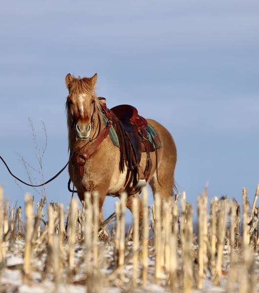 "AVAILABLE ON ONLINE HORSE AUCTION AT www DOT MagicHorseAuction DOT com BIDDING OPEN NOW thru TUESDAY | MARCH 17TH! BUY IT NOW AVAILABLE! *Final price will be determined on auction site* CONSIGNOR CONTACT INFO:Kate Shavalier #231-670-7101 LOCATION:Hesperia, Mi" "Bets is a 4yr old red dun Fjord Draft Cross mare standing at 15.1 hands tall and very stout. Her dad is a registered Fjord, and her mom was a Percheron cross. And we purchased Bets straight from the breeder, so there are no unknowns with her. You get her full history. Bets really takes after the Fjord side and is a good example of the breed. She is VERY smart and she catches on to new things quick you don’t have to show her twice. She has a drafty build so can easily carry a heavier rider, however she is not your typical draft she is agile and can move around like a quarter horse. So when you are on her it feels like you’re riding a nice stout quarter horse. She is a trail MACHINE! She will go ANYWHERE I point her. She has NO fear of water whatsoever. In the video, you’ll see her go into the river. What you don’t know is that the first time I took her in the river, she was ready to swim across it. But since it’s winter, I didn’t want to go for a swim. She’ll also cross huge logs and little wooden bridges. She’ll hop right up the steep banks and pick her way down a steep hill carefully. She is a regular powerhouse so those big hills do not intimidate her. She has a very nice smooth canter and a smooth trot. She has this little jog trot she’ll do that is easy to sit to. And she can do a more medium paced trot that is easy to post to. She will leave home alone just fine. She can lead or follow out on the trail and will separate away from the other horse. She is fine if the other horse takes off without her. She stands stock still for mounting, she loads right in and backs right out of a trailer, and good for getting her feet trimmed. She is middle of the pecking order. And an easy keeper. Gets along well with the other horses. She knows how to move her shoulders and hindquarters off the leg. And she also will neck or direct rein. She’s good with traffic coming from in front or behind her. We have even met up with the snow plow trucks a few times out on the road and she never blinks an eye at it. She is very safe does NOT spooky easily. NO bad habits or vices and NO maintenance required. Again we purchased Bets straight from the breeder was able to see both her parents and since we bought her we were able to start her the right way with the right foundation under her. She has a sweet personality and worms her way into your heart especially with those big soft doe eyes. I’ll end with this the first time you ride Bets you’ll love her you just can’t go wrong with her. She just has the right mindset, the right build, and very nice smooth gaits. She comes up to date on vaccines, dewormings, coggins, and vet check. Just call to set up a time to come see her or to ask any questions."