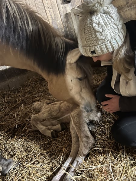 Loving Fjord Horse Mare for Sale We are offering a charming Fjord horse mare, born in 2019. She features the classic Fjord conformation combined with a friendly temperament and stands approximately 14.0 hh. This mare is well-suited for leisure riding and impresses with her calm disposition and hardy nature. Ideal for riders seeking a reliable and versatile horse for casual rides and recreational activities. She is always friendly and fearless! Her current 7-month-old colt may also be available for sale if the right home is found. Please feel free to contact me for more information or with any questions.