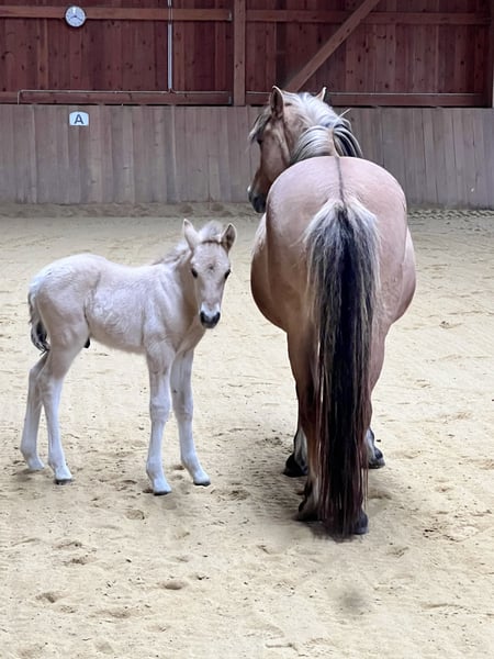 Verkaufe liebevolle Fjordpferd-Stute Zum Verkauf steht eine charmante Fjordpferd-Stute, geboren im Jahr 2019. Sie ist wunderschön kombiniert mit einem freundlichen Wesen und einem Stockmaß von ca. 140 cm. Die Stute ist bestens für die Freizeitgestaltung geeignet und begeistert durch ihr angenehmes Temperament sowie ihre robuste Natur. Ideal für Reiterinnen und Reiter, die ein zuverlässiges und vielseitiges Pferd suchen, um gemeinsame Ausritte und Freizeitaktivitäten zu genießen. Sie ist immer freundlich und hat vor nichts Angst! Ihr aktuell 7 Monate altes Hengstfohlen ist bei passendem Platz eventuell auch zu verkaufen. Bei Interesse oder weiteren Fragen stehe ich gerne zur Verfügung.