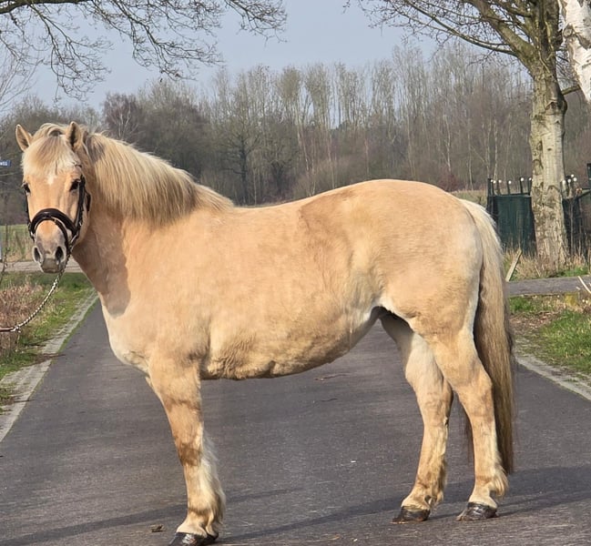 For sale is a truly sweet Fjord mare. Trudi is absolutely typical of her breed. She learns quickly, is very resilient and steady, and has a willing work ethic. She is also extremely people-oriented and genuinely affectionate. She rides calmly in the terrain, both in a group and alone. Nothing fazes her, whether it's road traffic or a spooky tarp. Since she maintains very close contact with her handler when leading and working from the ground—even when inexperienced or nervous riders are on her—she could also make a wonderful therapy horse. In the arena or on the riding ground, she is full of confidence but shows no bad habits such as bucking or rearing. Kicking, biting, and similar behaviors are completely foreign to her. Trudi is available for a trial ride and can be tested on site. To avoid tourism riding, a fee of €30 applies for the trial ride, which will be credited towards the purchase price if she is bought.