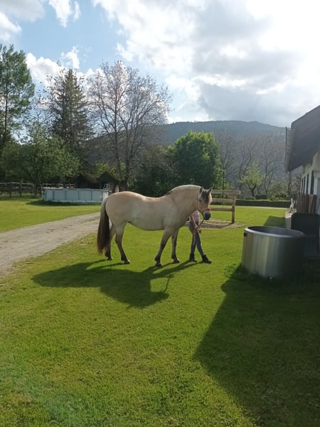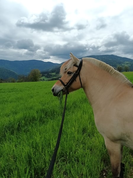 For sale is my Fjord mare, born in 2017, Dutch breeding. **Pedigree:** Sire: Gjøvik Grandsire: Hermansen The sale is solely due to personal health reasons. I am currently unable to give her the attention she deserves, and I want her to be able to do what she excels at regularly again, rather than just standing on the pasture all day. I have owned her since foalhood. In her early years, she reliably pulled a carriage. Later, she was ridden exclusively in the terrain and on the riding arena. Currently, she is regularly exercised by two girls (aged 14 and 16). Unfortunately, she is a bit too spirited for my 12-year-old daughter. Despite regular activity, she is not currently in her usual training or riding condition and needs to rebuild her muscle strength gradually. Additionally, she is familiar with groundwork and circus lessons, which she enjoys greatly and learns very quickly. She does not require a harsh hand but benefits from clear, consistent leadership. ➡️ Low in the hierarchy, very friendly with other horses and children ➡️ Typical Fjord: very food-oriented ➡️ Has never bitten or struck, but can be confident and stubborn, typical of the breed. A large, athletic Fjord mare with a wonderful character. She is not a school or manege horse and not suitable for constantly changing riders. She forms strong bonds with her humans and is willing to go through fire for her trusted person. Regularly shod and dewormed. ❗ No dealers, no riding schools or manege operations ❗ Not an emergency sale – price is secondary to finding the right home She will only be placed in caring, loving hands. Serious inquiries are welcome via personal message.