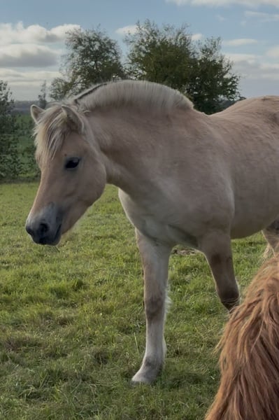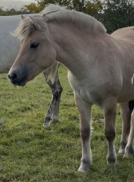 3 chevaux fjords à vendre - Jument fjord de 6 ans, très jolie et douce, avec un bon pedigree (MOSEGÅRDENS HAUGE / GOLF GUDENÅ), ainsi que son poulain femelle de 6 mois, recherchent une nouvelle famille. Taille au garrot d’environ 1,44 m. La jument est de nouveau pleine du même étalon (DIRCH SKOVÅ). Habituée au box et compatible avec le troupeau. Très sociable avec les humains. Elle a été montée avant sa grossesse. Prix pour la jument pleine et le poulain ensemble : 7900 € Jument pleine seule : 5900 € Pouliche : 2900 € - Beau et gentil hongre fjord de 1 an et demi, avec papiers. Sire : Model Skovå Mère : Malik Klattrup Très sociable et amical, facile à manipuler. Compatible avec le troupeau et élevé en pâture mixte dans un groupe en plein air. Il possède ses papiers complets et atteindra une taille d’environ 1,45 m. Prix : 2900 € À vendre à de bonnes mains.