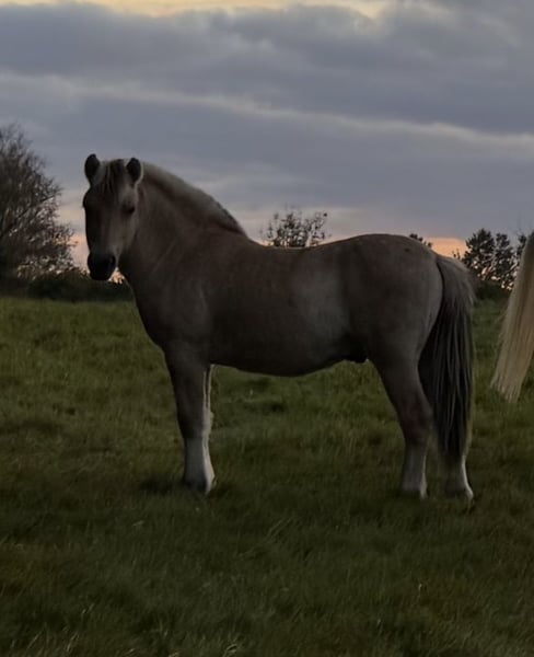 Three (4) Norwegian Forest Horses for sale. - Very attractive and sweet 6-year-old Norwegian mare with good pedigree (MOSEGÅRDENS HAUGE / GOLF GUDENÅ) and her 6-month-old filly are looking for a new home. Approximate height: 1.44 m. The mare is currently pregnant by the same stallion (DIRCH SKOVÅ). Accustomed to outdoor paddock keeping and compatible within the herd. Very people-oriented and friendly. She was ridden before her pregnancy. Price for the pregnant mare and foal together: €7,900 Pregnant mare alone: €5,900 Foal: €2,900 - Beautiful, friendly 1.5-year-old Norwegian gelding with papers. Sire: Model Skovå Dam: Malik Klattrup Very people-oriented and friendly. Compatible within the herd and raised in a mixed herd in an outdoor paddock environment. He has full papers and will reach approximately 1.45 m at full height. Price: €2,900 To be sold to a good home.