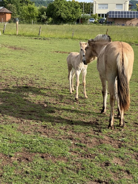 **Sales Advertisement: Fjord Horse Mare** For sale is a charming Fjord horse mare, born in 2025. With her elegant dun coat and a height of 149 cm, she is not only a real eye-catcher but also a loyal companion for leisure activities. This mare is excellently suited for trail rides, groundwork, and relaxed hours in the countryside. She has a friendly disposition and is easy to handle, making her an ideal partner for horse lovers of all experience levels. If you are looking for a loving and reliable leisure horse, this Fjord horse mare could be just the right fit for you! She is growing up in a herd environment, which contributes to her good social skills. Both parents are present and available for viewing. She could move to her new home at the end of October. She is very affectionate and trusting. For further questions, please contact me by phone or via WhatsApp. Both parents have full papers. If you are interested or need more information, feel free to get in touch.