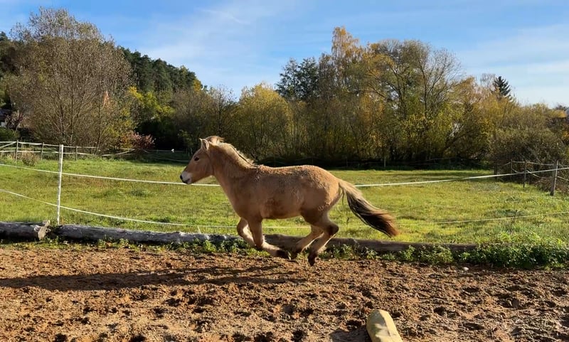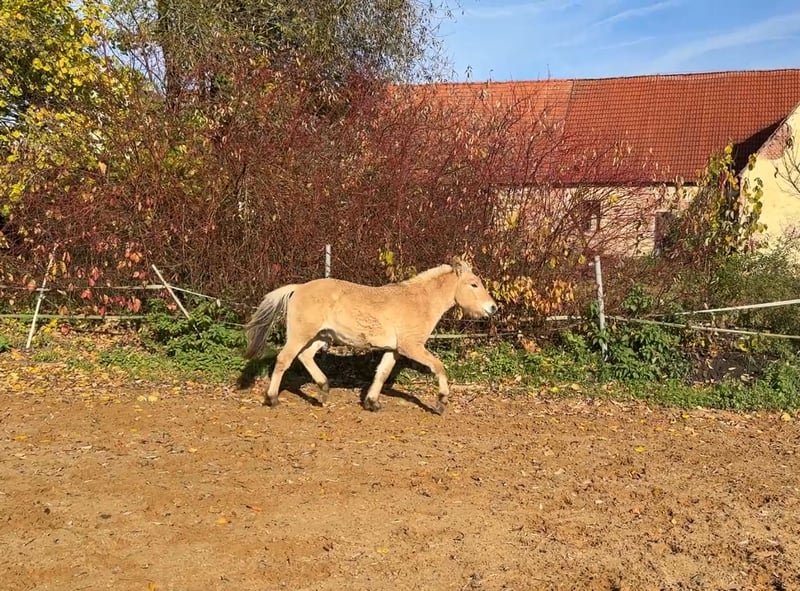 Aus unserer Zucht verkaufen wir den 1,5 Jahre alten lieben jungen Hengst. Er beherrscht super das Fohlen ABC ist regelmäßig beim Schmied vorgestellt sowie regelmäßig entwurmt. Kleine Spaziergänge sowie laufen lassen auf Platz und Halle macht er sehr brav. Außerdem sind unsere Pferde nicht besonders schreckhaft, da sie bei uns viel kennen lernen dürfen so wie andere Kinder, verschiedenste Tiere und Geräusche. Als Fohlen, bei der Eintragung ist er sehr gut bewertet worden und hat die Goldprämie erhalten! Er stammt von Klosterhof Golia ( Weißfalb) Und Kelvin ( rotfalb) ab Er wächst bei uns in der Männer WG auf und könnte auch zur Aufzucht noch dableiben, da sich die Gruppe sehr gut versteht.