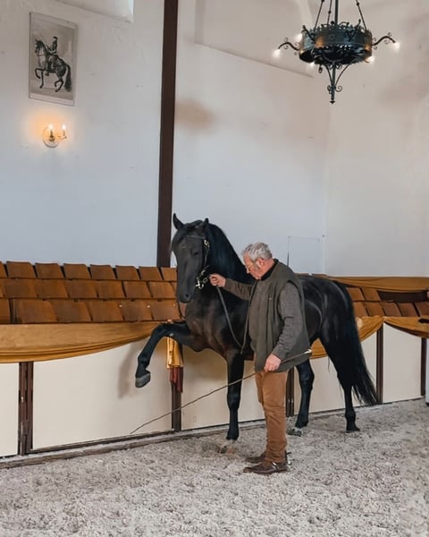 Szczególnie piękny i rzadki barokowy ogier Frederiksborger z potencjałem na szkołę wyższą i hodowlę poszukuje nowego, kochającego domu. Frederic, znany również jako „Freddy”, ma sześć lat i jest ogierem Frederiksborger, który od początku swojej edukacji jest szkolony w klasycznej filozofii Hofreitschule Bückeburg. Pod siodłem wykazuje pewność w chodach: krok, galop oraz wszystkie chodzone figury boczne. Obecnie pracuje nad poprawą równowagi w galopie i uczy się kroku hiszpańskiego oraz podstaw piaff. Freddy ma czułe usposobienie i pozytywne nastawienie do pracy, pod warunkiem, że otrzymuje czas na zrozumienie zadania. To odważny, pewny siebie młody ogier, który rozkwita pod opieką sprawiedliwego i konsekwentnego opiekuna. Dobrze znosi czyszczenie, wizyty u weterynarza i kowala. Łatwo się go ładuje, dobrze podróżuje i szybko adaptuje się do nowych warunków. W tym roku odniósł sukcesy podczas mniejszych pokazów publicznych oraz dużych gal, pokazując swoją niezawodność i odwagę w wymagających sytuacjach i pracy w towarzystwie innych ogierów. Ponieważ Freddy niestety nie znajduje pełnej satysfakcji w codziennym życiu jako koń szkolny, szukamy dla niego kochającego, stałego domu – takiego, który doceni jego urodę i charakter oraz pomoże mu rozwinąć pełny potencjał. Cena: 18 000 € – po więcej informacji i filmy prosimy o kontakt przez wiadomość prywatną.