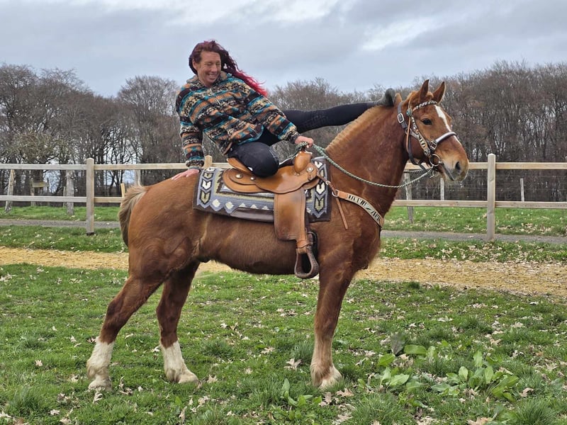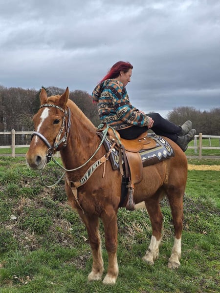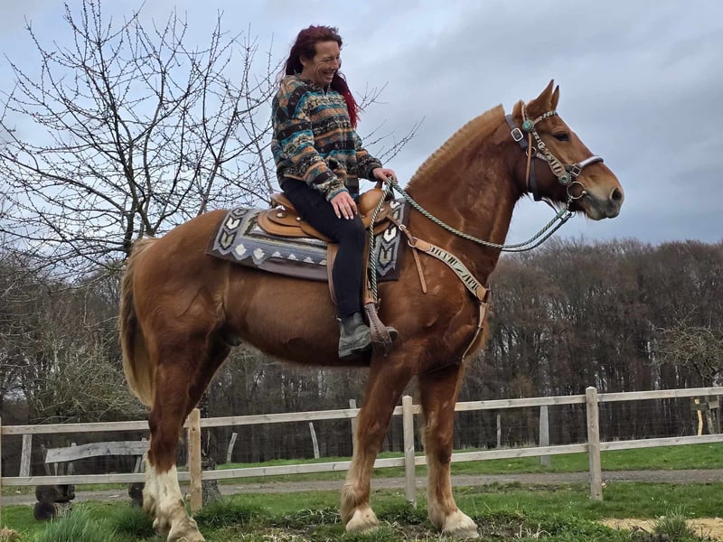 Freiberger Wallach RUBY – brav im Umgang & zuverlässig zu reiten Rasse: Freiberger Alter: 14 Jahre (wird dieses Jahr 15) Stockmaß: ca. 1,57m Preis: 6500 ,- Mit Papieren, Equidenpass (E-Pass) und AKU ✨ Beschreibung: RUBY ist ein freundlicher und zuverlässiger Freiberger Wallach mit angenehmem Charakter. Im täglichen Umgang zeigt er sich brav, ruhig und unkompliziert. Putzen, Führen und Satteln kennt er gut und bleibt dabei gelassen. Unter dem Sattel ist Ruby angenehm zu reiten.Er arbeitet gut mit und vermittelt seinem Reiter ein angenehmes Reitgefühl. Mit seinem freundlichen Wesen und seiner ruhigen Art ist er ein zuverlässiger Partner für Freizeit und Gelände. 🐎 Geeignet für: Freizeitreiter, die ein braves, unkompliziertes und zuverlässiges Pferd suchen. 🩺 Unsere Pferde werden regelmäßig: – entwurmt – vom Schmied betreut – osteopathisch kontrolliert 🛍 Hofladen: Westernsättel, Trensen und weiteres Zubehör erhältlich. 🚛 Transport und Equipment können auf Wunsch organisiert werden. Unser Service: ✅ 3 Monate Umtauschrecht ✅ Proberitt: 35 € – jedes weitere Pferd 25 € (bei Kauf am selben Tag wird der Betrag angerechnet) 💰 Preisnachlass bei sofortiger Mitnahme oder Transport am gleichen Tag: • Preiskategorie 1: 100 € Rabatt • Preiskategorie 2 (ab 5.000 €): 250 € Rabatt ✅ Persönliche und ehrliche Beratung 📞 Anfragen bitte ausschließlich telefonisch: 0171 – 4001968 🕗 Erreichbar täglich von 8–20 Uhr ⚠️ Keine E-Mail oder WhatsApp ⚠️ Alle Angaben ohne Gewähr