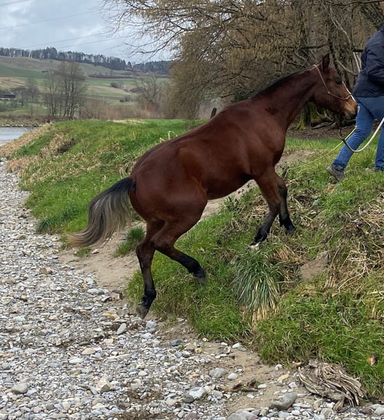 Lasco (Lionel/Everton) ist ein liebenswerter, anhänglicher und menschenbezogener 4-jähriger Freiberger Wallach mit einem 1a Charakter und angenehmem Temperament. Er ist sehr neugierig und überhaupt nicht ängstlich. Aktuell hat er ein Stockmass von 1.60 m. Er ist hochmotiviert und freut sich immer, wenn man mit ihm etwas unternimmt, sei es Bodenarbeit, als Handpferd mit ins Gelände, Reiten oder Fahrtraining, er ist immer voll und ganz bei der Sache. Seine Stärken sind der Schritt und die Trabverstärkung. Ich habe ihn als Fohlen gekauft und selber ausgebildet, er ist bei uns zu Hause zusammen mit seinem Halbbruder und 2 anderen Pferden aufgewachsen. Er kennt Bodenarbeit nach Parelli, Longenarbeit klassisch, Handpferd im Gelände, Reiten und Fahren auf Platz wie auch im Gelände. Hängerverladen und Hufschmied sind für ihn ganz normale Routinen. Im September 2025 habe ich mit ihm den Feldtest gemacht, welchen er mit sehr guten Noten abgeschlossen hat (Reiten 7.8 / Fahren 8.57). Er hat auch schon erste Turniererfahrungen gesammelt (Promotion 3-Jährige, Dressur und Kegelfahren), beides hat er souverän gemeistert. Bei ernsthaftem Interesse freue ich mich auf Ihre Nachricht und kann gerne auch noch weitere Auskünfte erteilen.
