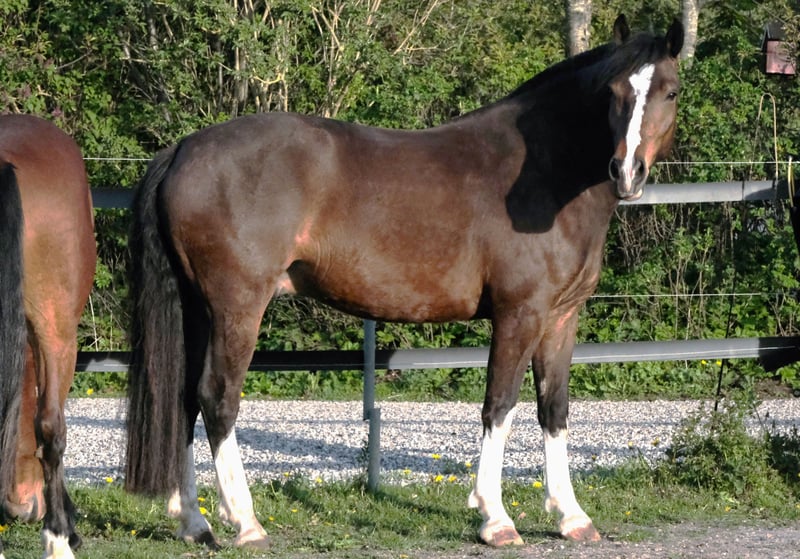 Namiro is a true eye-catcher and a real gem with an excellent conformation and beautiful natural gaits. He is very well ridden and has been professionally trained. A genuine all-rounder, just as you would imagine a Freiberger to be. He loves his life in the herd paddock with other geldings, with whom he can also enjoy some playtime. Within the group, he has a rather balancing character and tends to avoid conflicts. With us, he has only been driven single harness. However, he feels more comfortable in a pair. He can also handle small jumps. He is soft in the mouth and already performs some lateral movements. He is easy to load, well-behaved at the blacksmith, and cooperative with the veterinarian. Only in private, caring, and encouraging hands.