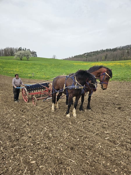 Schöne Urfreiberger zu verkaufen Bei uns finden Sie Ihren passenden Urfreiberger! Unser Pferdebestand variiert zwischen 40 und 50 Pferden von gross bis klein. Wir bieten Ihnen eine Auswahl an schonend und gut ausgebildeten Urfreibergerpferden. Die Pferde werden im Reiten, Fahren und Schwachholzziehen ausgebildet. Sie dürfen als Kunde ein Angebot von vielen unterschiedlichen Typen (Charakter, Farbe, Alter etc.) erwarten. Als Zugpferd zum Arbeiten auf dem Feld oder im Wald, als gewöhnliches Fahr- oder Freizeitpferd, als Reitpferd für lange gemütliche Ausritte im Gelände – unsere Pferde sind für alles zu haben. Sie sind absolut verkehrssicher, an Kinder gewöhnt und sehr umgänglich. Im Moment stehen Ihnen ungefähr 15 Verkaufspferde sowie unausgebildete Jungpferde sowie einjährige Fohlen zur Auswahl. Machen Sie sich selber ein Bild und besuchen Sie uns im schönen Solothurner Jura. Weitere Informationen über uns sowie unseren aktuellen Verkaufspferden entnehmen Sie bitte unserer Website: https://www.freiberger-dubhof.ch/ Da wir momentan viele Anfragen erhalten und zum Verhindern des Probereit-Tourismus, berechnen wir eine Gebühr von CHF/EUR 50.- für einen Termin (Pferde besichtigen, ohne Reiten) und CHF/EUR 80.- fürs Probereiten. Diese wird beim Kauf des Pferdes vollumfänglich angerechnet. Ebenfalls besteht bei uns bei einer Besichtigung die Möglichkeit für eine Übernachtung zu einem fairen Preis.
