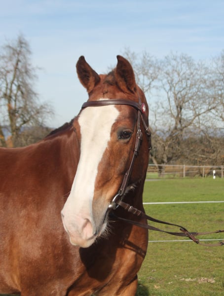 erfahrene Freiberger Fuchsstute mit viel weiss