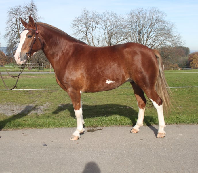 Die Stute ist sehr lieb, ruhig und brav im Umgang, kann von Kindern und unerfahrenen Personen geführt, geputzt und zum Reiten bereit gestellt werden. Sie geht sehr gerne ins Gelände ausreiten - egal ob alleine oder von Kindern, Jugendlichen und Erwachsenen in der Gruppe. Sie ist nicht schreckhaft, top verkehrssicher, hat keine Angst vor Kühen, Schafen, freilaufenden Hühner. Sie ist auf einem lebhaften Landwirtschaftsbetrieb mit grossen Maschinen, Traktoren und fussballspielenden Kinder :-) zuhause... Auch ist sie gefahren. Sie ist sehr sozial, ist unkompliziert mit anderen Pferden und Ponys - Aufgrund dessen auch gut möglich in eine Offenstallhaltung. Eine tolle Stute, welche der ganzen Familie Freude machen kann!