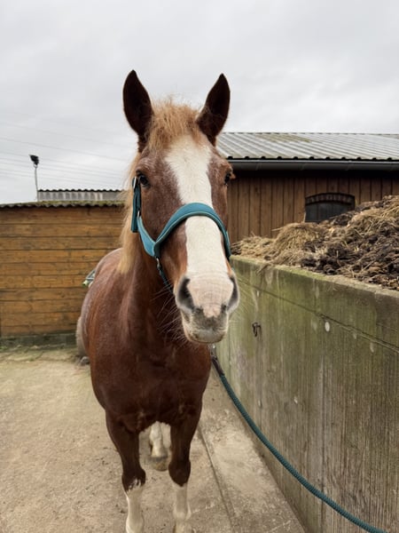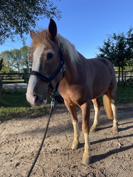 Leila ist sehr lieb, ruhig und brav im Umgang. Sie steht brav am Anbinder und lässt sich gerne putzen und sehr gerne kraulen. Dabei flämt sie häufig, wenn ihr die Krauelstelle besonders behagt ; ). Sie ist 2015 geboren und somit 10 Jahre alt und ist mit ihren 160 cm Stockmaß sehr groß und deckt gut ab. Charakterlich ist sie freundlich und zugewandt, sie arbeitet in der Boden-, Longen-, Handarbeit etc. gut mit und ist dort auch mit vielem bekannt. Sie geht mit einem Partner gerne ins Gelände ausreiten, arbeitet aber auch sehr gerne auf dem Platz oder in der Halle. Sie ist fein an den Hilfen und hat ein eher ruhiges Tempo. Im Galopp tut sie sich noch etwas schwer, tatsächlich losgelassen durchzuspringen. Leila benötigt einen Reiter, der ihr Sicherheit gibt und wird somit nicht an Anfänger oder als Kinderpferd abgegeben. Sie ist nicht schreckhaft und hat keine Angst vor Kühen, Schafen, freilaufenden Hühner und jeglichen Arten von Fahrzeugen. Auch wurde sie eingefahren. Sie ist sehr sozial, ist unkompliziert mit anderen Pferden und Ponys und niedrigrangig. Bei und steht sie im Sommer im Offenstall und im Winter in der Box. Gegen Aufpreis könnte Sie mit ihrem gesamten Equiment abgegeben werden. Anfrage für Leila gerne per Mail: reitunterricht123@gmail.com
