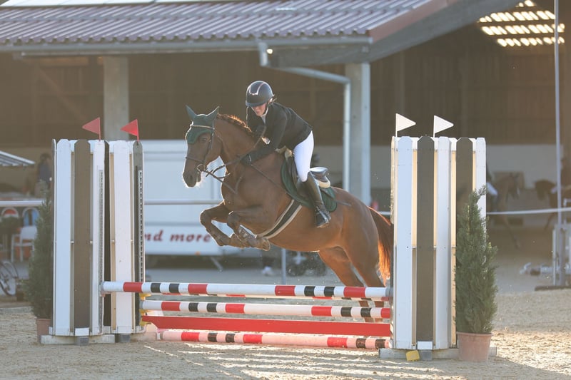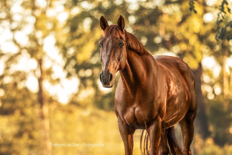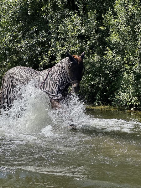 Una ist ein wahrer Goldschatz! Sie geht alleine, aber auch als Handpferd ins Gelände (auch mit Kindern und unerfahrenen Reitern), ist schmiede- und verladefromm, kennt Hunde, Kinder (auch welche die mit Bobby-Car und Fahrrad an ihr vorbei schießen, oder die Anbinde-Stange lieber zum turnen benutzen). Sie ist letztes Jahr erstmals in Österreich Turnier vorgestellt worden und hat direkt ein Schleifchen gesammelt. Dieses Jahr am Übernachtungsturnier wieder bei 3 von 3 Starts mit 16-jähriger platziert. Auch Dressur läuft sie sehr schön. Bodenarbeit und Gelassenheitstraining, sowie reiten mit Halsring kennt sie auch und meistert alle ihr vermeintlich gruseligen Situationen ohne mit der Wimper zu zucken. Sie läuft über Matratzen, Planen, kennt Fahnen, Bällebad und macht jeden Schabernack geduldig mit. Una ist ein Pferd, das die Vielfalt der ihr gestellten Aufgaben schätzt. Nur in der Halle Dressur oder 4x die Woche springen, das wünsche ich mir für sie nicht. Vor allem im Gelände geht sie richtig auf. Springen macht ihr auch unheimlich Spaß. Sie kennt den Bach und entpuppte sich als kleine Wasser Ratte. Aktuell steht sie mit 2 anderen Stuten auf einer großen Koppel. Sie ist vorne beschlagen und kommt damit sehr gut zurecht. Bei uns steht sie den ganzen Sommer über mit einer Fliegendecke und Haube, da sie auf Stiche etwas empfindlich reagiert und sich dann auch dolle scheuert. Steigen und bocken kennt sie nicht! Bei uns hatte sie in fast 5 Jahren einen einzigen kleinen Huf-Abszess. Ansonsten immer gesund. Zähne sind gemacht und Physio war zuletzt im Oktober da. Sie wird mit ihrem kompletten Equipment abgegeben, das ist im Preis inkl. Springsattel von Ikonic, Trense, Gurt, Unterdecke, Regendecke mit Halsteil und ggfalls können auch Gamaschen und eine Schabracke mit abgegeben werden. Wenn ihr ein Pferd sucht, das die ganze Familie glücklich machen kann und möchte, dann seid ihr hier genau richtig. Una wird nur, wenn alles stimmt und in allerbeste Hände verkauft. Standort ist: 85445 Bei Interesse meldet euch gerne unter: 0176-24989677 Videos folgen zeitnah.