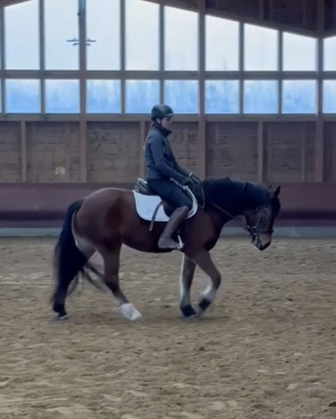 Traumpferd gesucht? Sehr liebe und unkomplizierte Freibergerstute Zum Verkauf steht diese wunderschöne braune Freibergerstute, 3 Jahre alt, ca. 1,56 m groß, ein echtes Verlasspferd mit einem goldenen Charakter. Sie ist sehr brav, rittig, anständig und absolut unkompliziert im Umgang. Ein Pferd, das man einfach gern um sich hat. Die Stute ist im Herdenverband aufgewachsen, dadurch bestens sozialisiert, freundlich und respektvoll mit Menschen und ihren Artgenossen. Auch im Alltag zeigt sie sich durchweg zuverlässig: schmiedefromm, verladefromm, longiert und bereits vom Profi, Pferde-und altersgerecht in der Basis geritten. Zusätzlich kennt sie Elemente aus dem Gelassenheitsparcours und nimmt neue Reize ruhig und gelassen an. Besonders schön: Sie war sogar schon im Gelände, in Begleitung Erwachsener mit einem 10-jährigen Mädchen und blieb dabei sehr brav und anständig. Damit bringt sie beste Voraussetzungen für ein zukünftiges Freizeit- und Familienpferd mit. Sie ist sowohl Offenstall als auch Box mit Paddock gewöhnt und liebt die Beschäftigung mit „ihrem“ Menschen. Sie ist aufmerksam, kooperativ und besitzt ein großes Herz. - Volle Papiere mit Abstammung - ! Aktuelles tierärztliches Gesundheitszeugnis ohne Befund ! - Top für zukünftige schöne Ausritte Diese Stute ist ein Traumpferd in jeder Hinsicht. Ein Pferd zum Liebhaben, Vertrauen und gemeinsam Wachsen. Ein echtes Herzenspferd, das man nicht so leicht wieder findet. Bei ernsthaftem Interesse freue ich mich über ihre Nachricht. Reitvideos können gerne verschickt werden. Für einen Besuchstermin berechnen wir 40 € die beim Kauf des Pferdes selbstverständlich erstattet werden. Hierfür bitten wir Sie um Verständnis. TEL: 01709343872