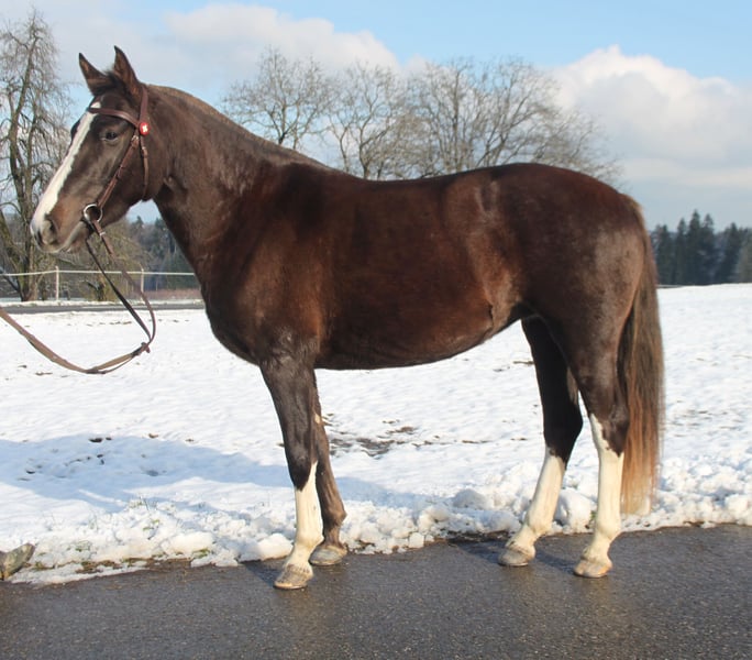 Die Stute ist sehr ruhig, brav und abgeklärt im Umgang. Sie wird für geführte Ausritte im Gelände eingesetzt - hier kann sie von unerfahrenen Kindern, Jugendlichen und Anfängern in der Gruppe geritten werden. Auch alleine ausreiten kennt sie bestens. Aufgrund ihrer ruhigen Art können wir sie gut als Therapiepferd vorstellen. Auch die Arbeit an der Longe, auf dem Sandplatz oder an der Kutsche - sie ist angenehm motiviert und mit Freude mit dabei. Die Freibergerstute ist absolut verkehrssicher, brav beim Hufschmied, problemlos zum verladen. Sie ist sehr sozial - egal ob Wallache oder Stuten, Ponys oder Pferde - sie kommt mit allen gut klar. Die Stute ist auf einem lebhaften Landwirtschaftsbetrieb und viel im Gelände unterwegs: grosse Traktoren und Maschinen, spielende Kinder, Kühe und Schafe, freilaufende Hühner...dies allem begegent sie ohne grosse Mühe. Für Infos und Preisauskünfte etc gerne per Telefon.