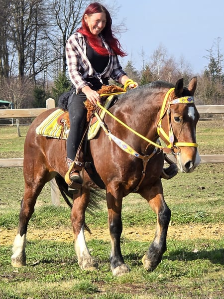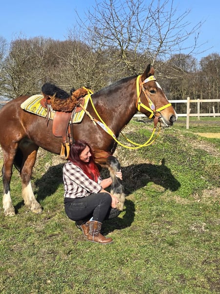 Zuverlässige Freiberger Stute – brav & vielseitig einsetzbar DEESSE ist ein echtes Traumpferd ! Alter: 8 Jahre Stockmaß: ca. 154 cm Preis:7900,- AKU: vorhanden ✨ Beschreibung: Diese 8-jährige Freiberger Stute überzeugt mit ihrem ausgeglichenen, ruhigen Wesen und ihrer angenehmen Art im täglichen Umgang. Sie ist freundlich, aufmerksam und absolut unkompliziert im Stall, beim Putzen sowie beim Führen. Unter dem Sattel zeigt sie sich zuverlässig und angenehm zu reiten. Sie arbeitet motiviert auf dem Platz und ist besonders im Gelände eine tolle Partnerin – entspannt, trittsicher und jederzeit händelbar. Zusätzlich ist sie gefahren und kennt die Arbeit vor der Kutsche. Auch hier präsentiert sie sich brav und sicher. Eine ehrliche, vielseitige Freizeitpartnerin, die ihrem Reiter stets ein gutes Gefühl gibt. Geeignet für: Freizeitreiterinnen und Freizeitreiter, die eine ausgeglichene, geländesichere und auch gefahrene Stute suchen. Ideal für entspannte Ausritte, Platzarbeit und Freizeitfahren. Unsere Pferde werden regelmäßig: – entwurmt – vom Schmied betreut – osteopathisch kontrolliert Hofladen: Westernsättel, Trensen & Zubehör Transport sowie passendes Equipment auf Wunsch günstig organisierbar Unser Service: ✅ 3 Monate Umtauschrecht ✅ Proberitt: 35 €, jedes weitere Pferd 25 € (beim Kauf am selben Tag angerechnet) ✅ 100 € Sofort-Rabatt bei Abholung oder Transport am gleichen Tag ✅ Persönliche & ehrliche Beratung Anfragen bitte ausschließlich telefonisch: 0171 – 4001968 Erreichbar täglich von 8–20 Uhr ⚠️ Keine E-Mail oder WhatsApp ⚠️ Alle Angaben ohne Gewähr