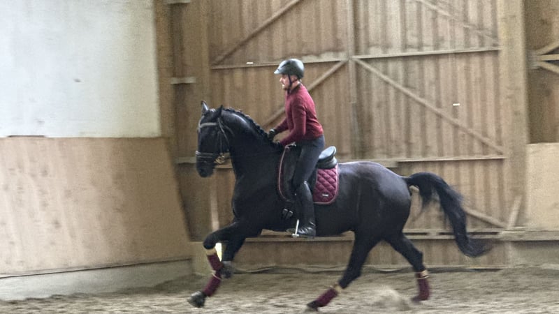 For sale is a promising Austrian warmblood gelding, born in 2020. This elegant black stallion impresses with his balanced temperament and impressive movement potential, making him ideal for dressage. The gelding is well-schooled and already demonstrates solid basic gaits, indicating a promising development in dressage. With his friendly nature and good basic training, he is suitable for ambitious young riders as well as experienced equestrians seeking a reliable partner for the dressage arena. His typical Austrian warmblood character, combined with solid conformation and a pleasant temperament, makes him a delightful companion for daily training and competitions. A horse with great potential for the future – perfect for those looking for a well-trained dressage partner who continues to progress. I am happy to provide further information and a personal impression upon request.